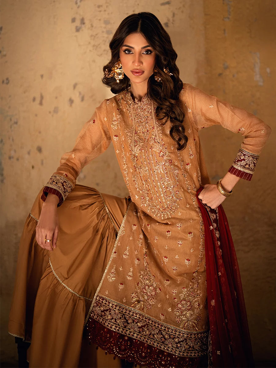 • Front Panel: Khaddi net Embroidered (0.34 M)