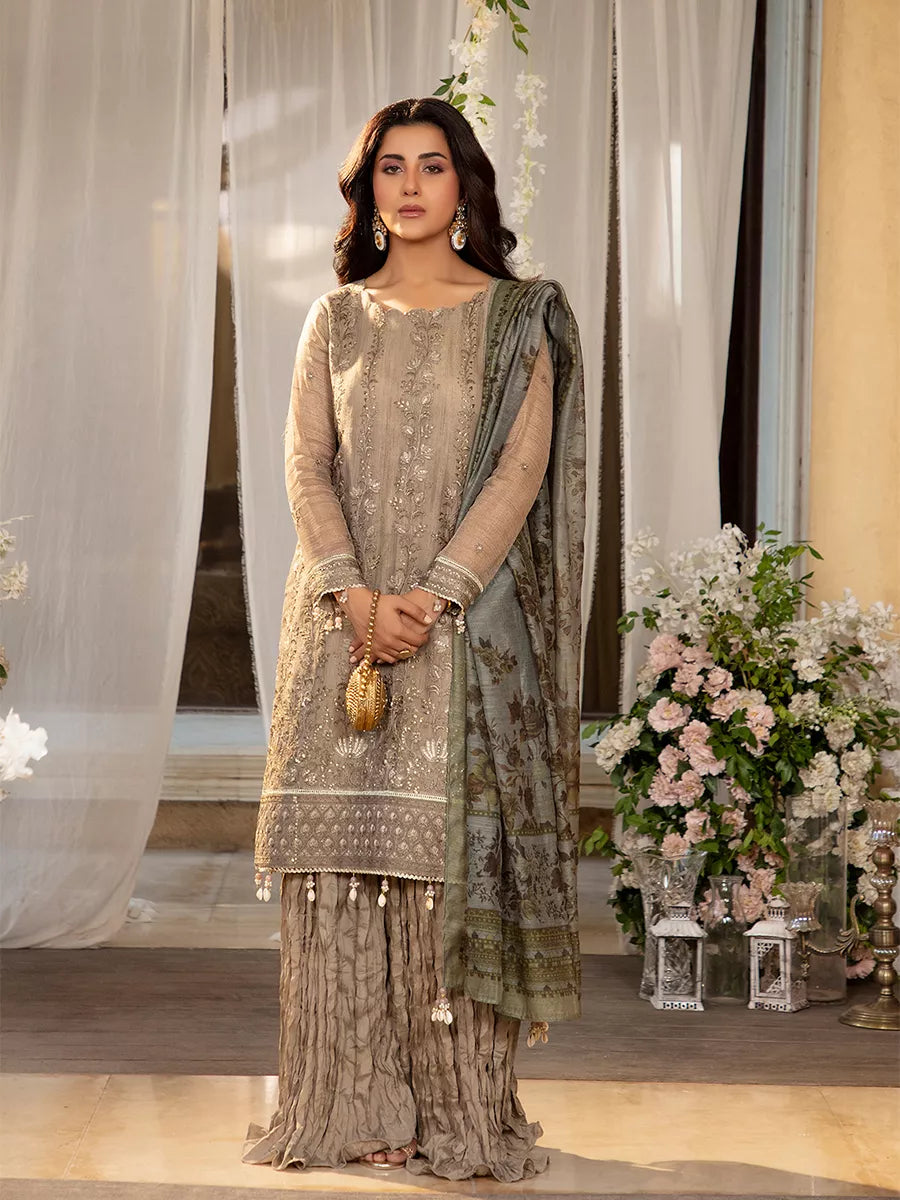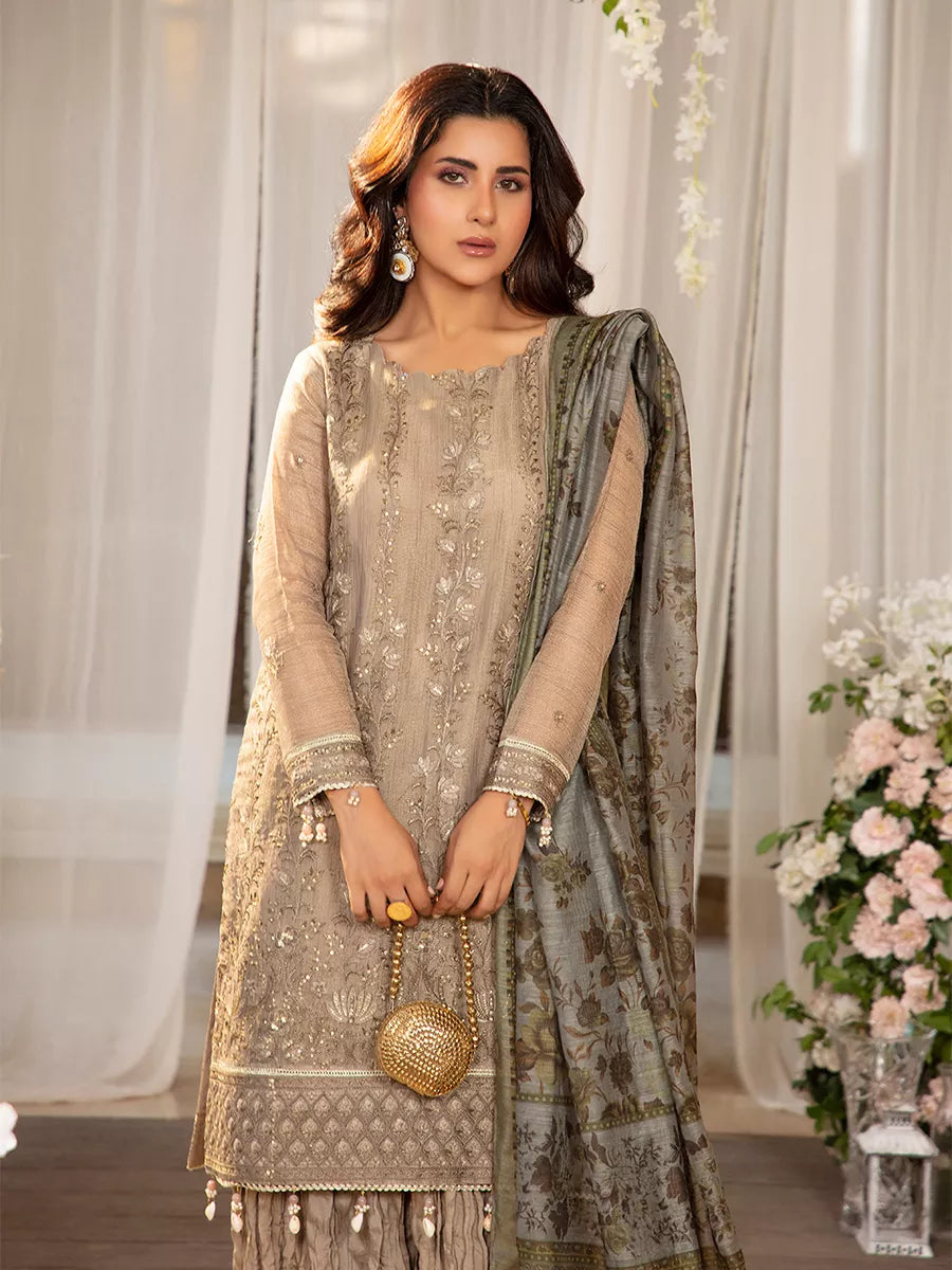 Shine brighter this season with Jashn-e-Noor, A stunning 3PC festive embroidered suit designed to enhance every celebration with effortless glamour and rich, intricate craftsmanship.