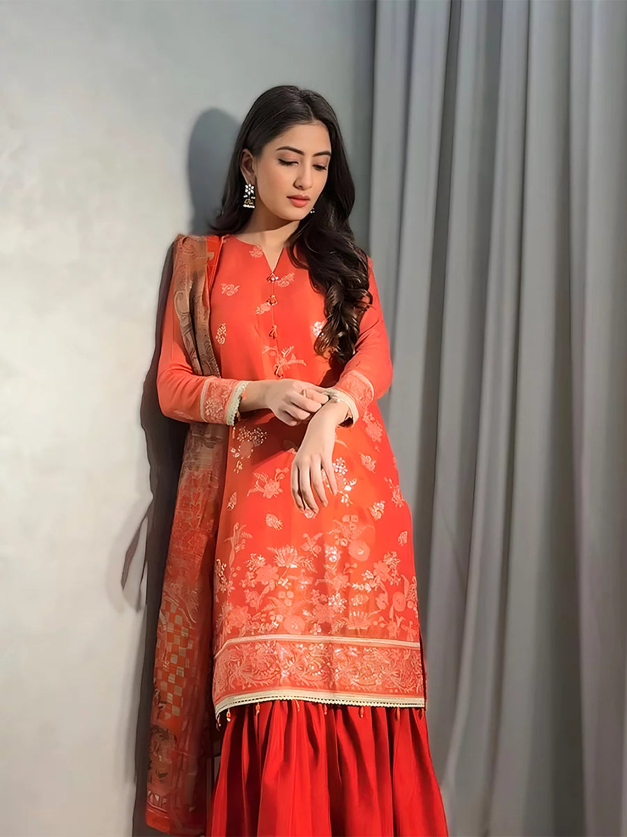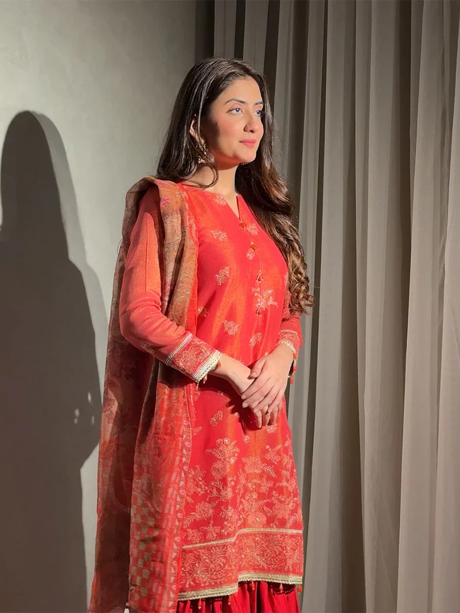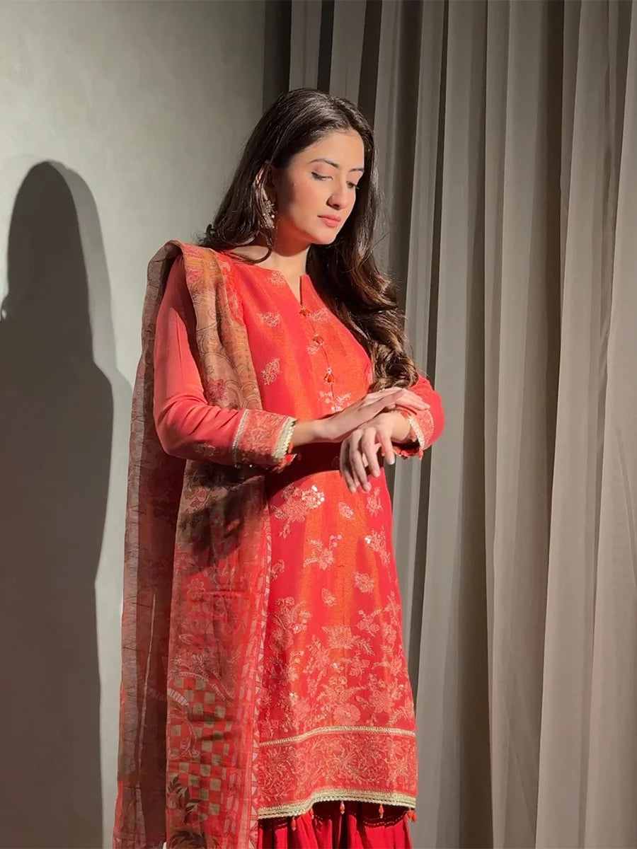 Shine brighter this season with Jashn-e-Noor, A stunning 3PC festive embroidered suit designed to enhance every celebration with effortless glamour and rich, intricate craftsmanship.
