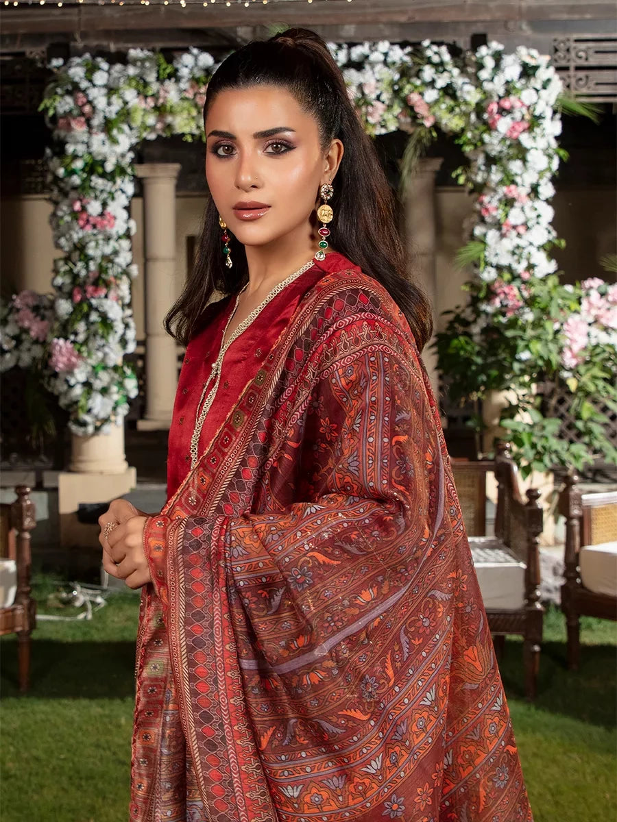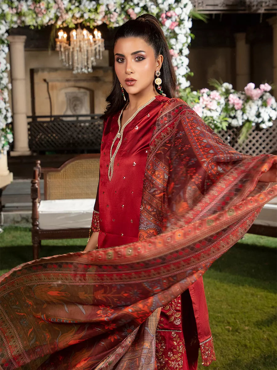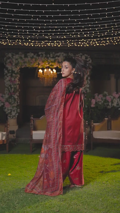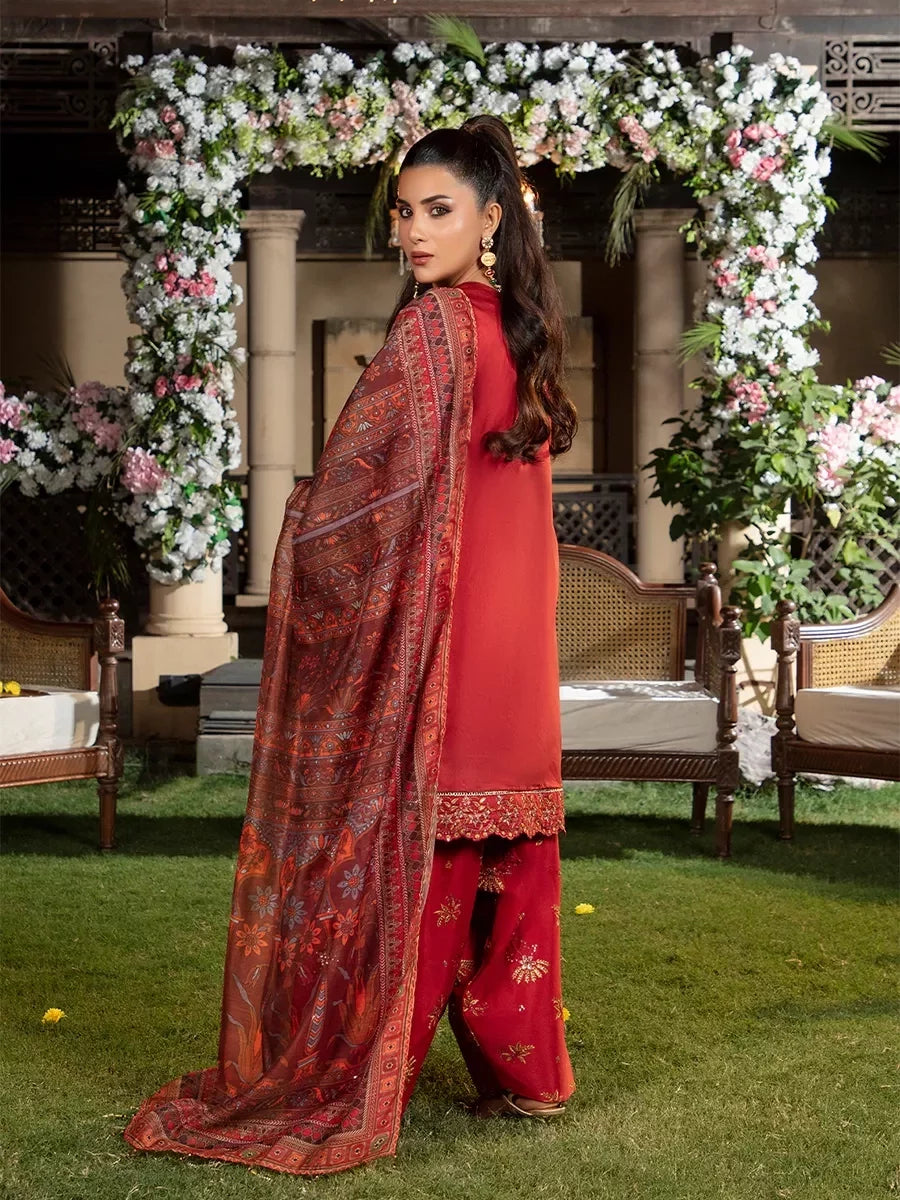 Shine brighter this season with Jashn-e-Noor, A stunning 3PC festive embroidered suit designed to enhance every celebration with effortless glamour and rich, intricate craftsmanship.