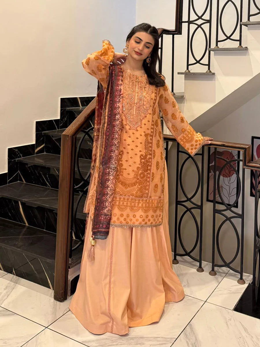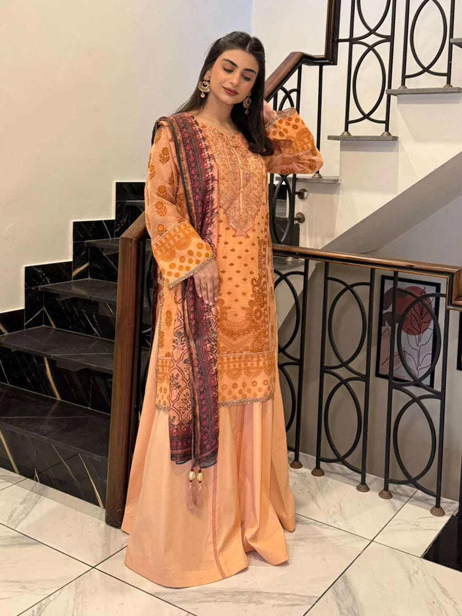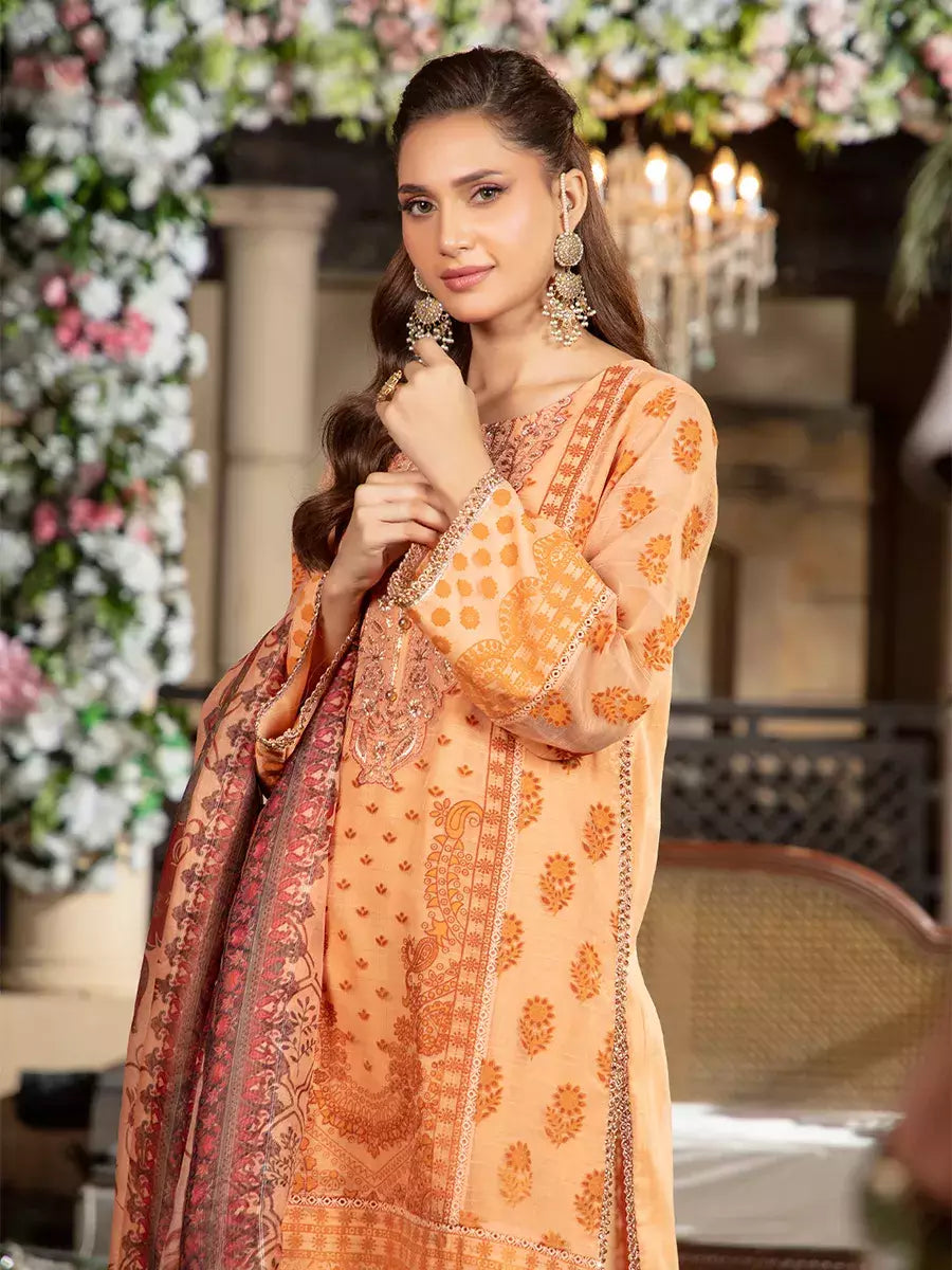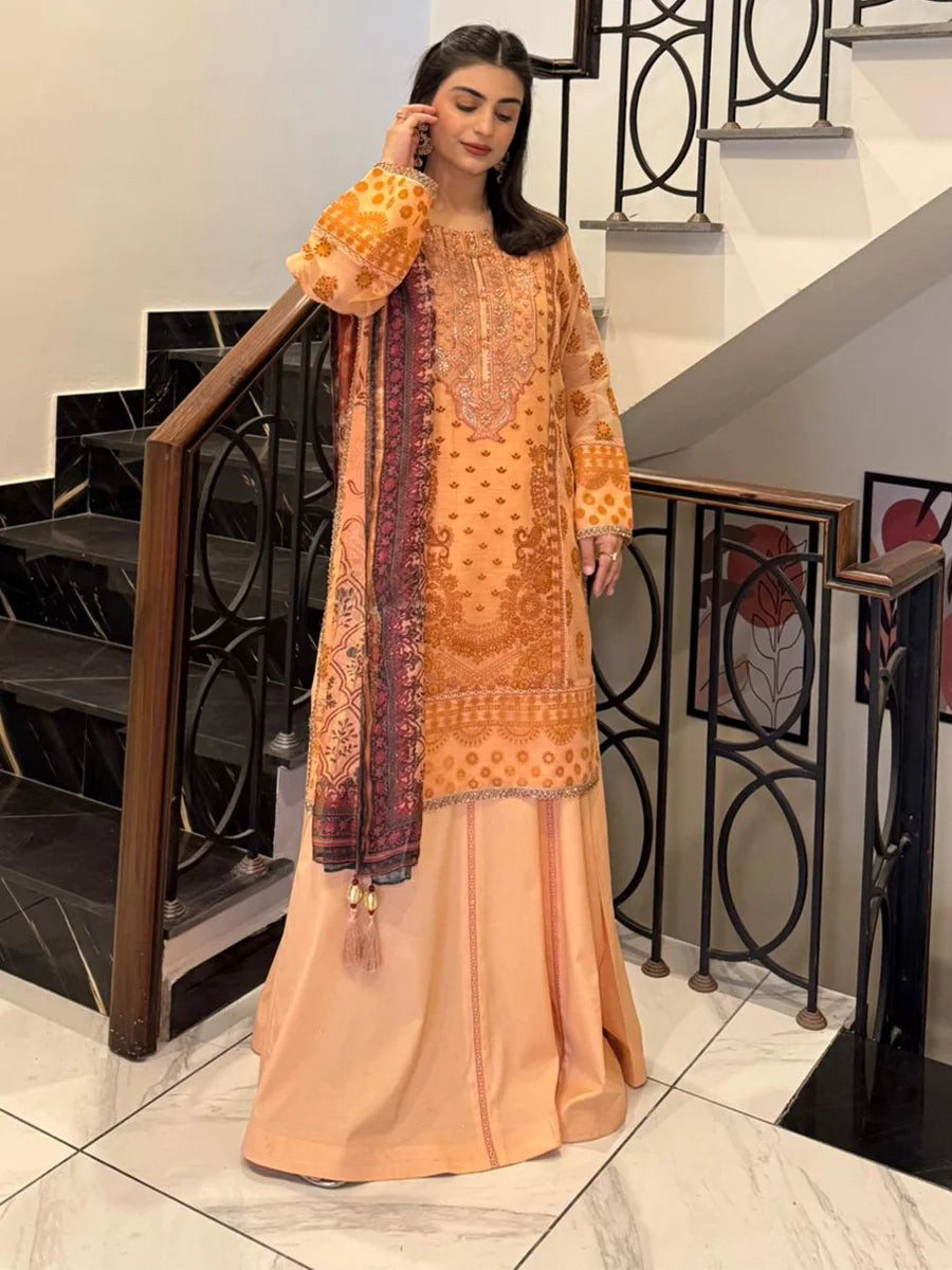 Shine brighter this season with Jashn-e-Noor, A stunning 3PC festive embroidered suit designed to enhance every celebration with effortless glamour and rich, intricate craftsmanship.