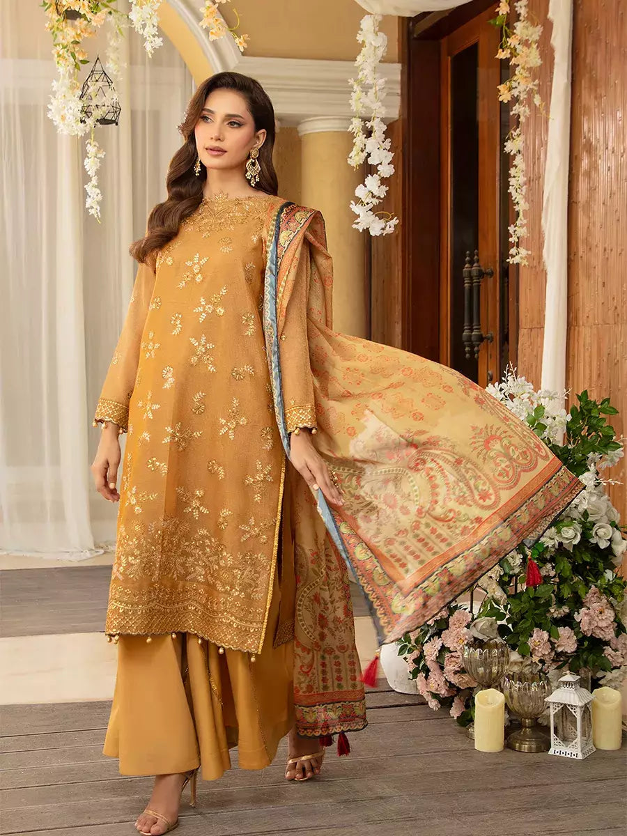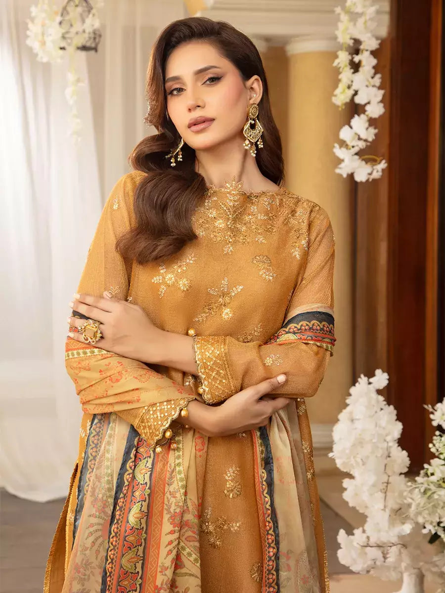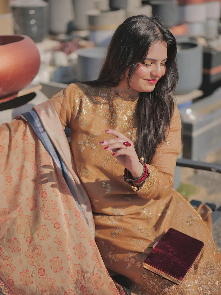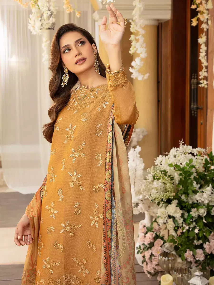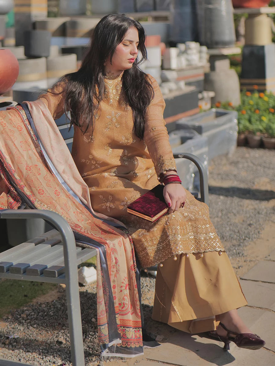 Shine brighter this season with Jashn-e-Noor, A stunning 3PC festive embroidered suit designed to enhance every celebration with effortless glamour and rich, intricate craftsmanship.