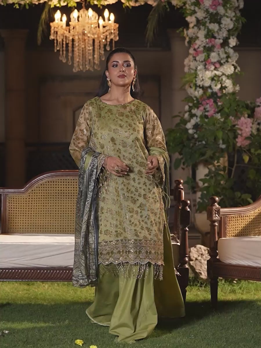 Shine brighter this season with Jashn-e-Noor, A stunning 3PC festive embroidered suit designed to enhance every celebration with effortless glamour and rich, intricate craftsmanship.