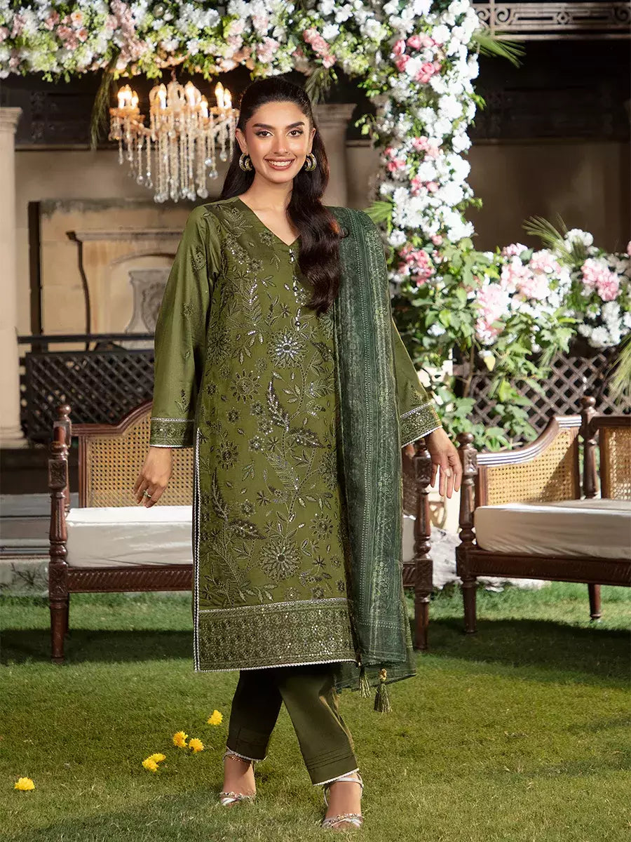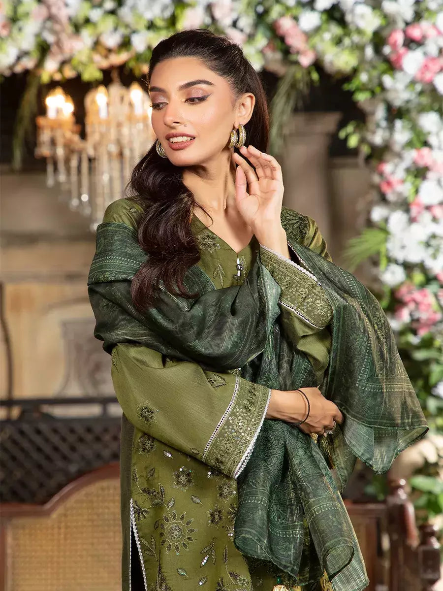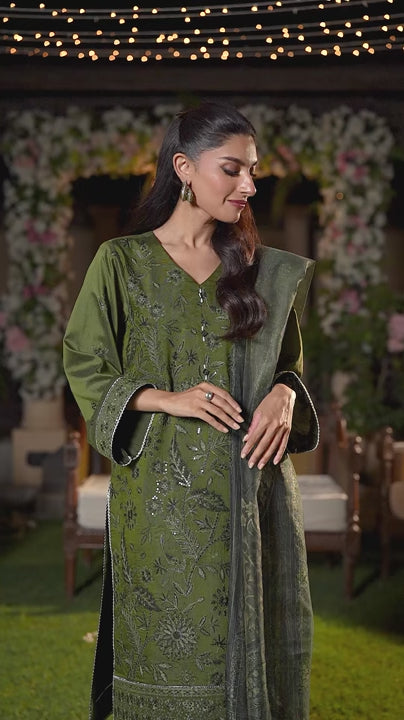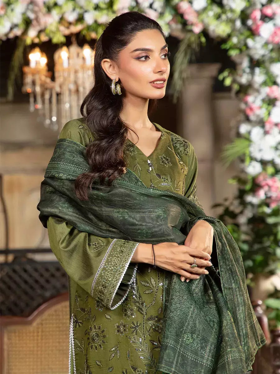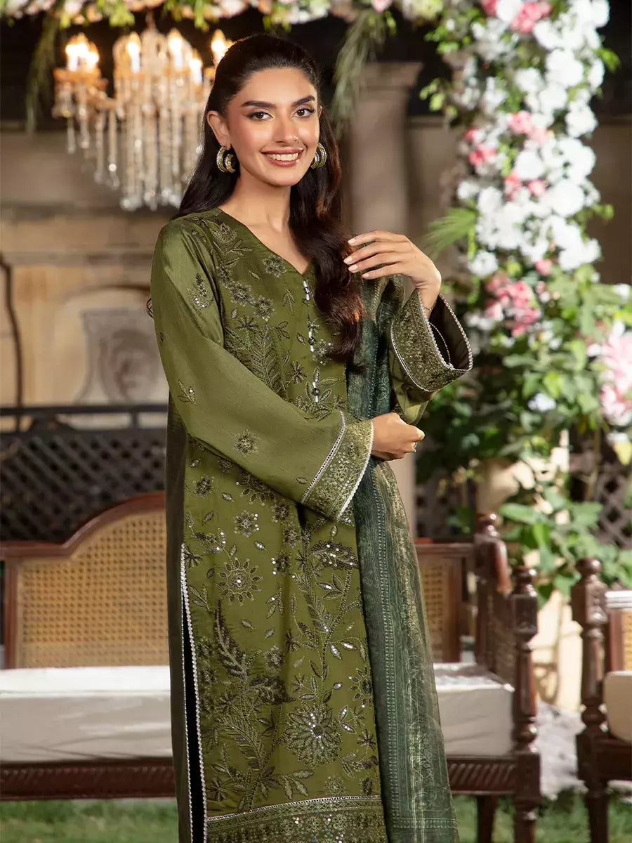 Shine brighter this season with Jashn-e-Noor, A stunning 3PC festive embroidered suit designed to enhance every celebration with effortless glamour and rich, intricate craftsmanship.