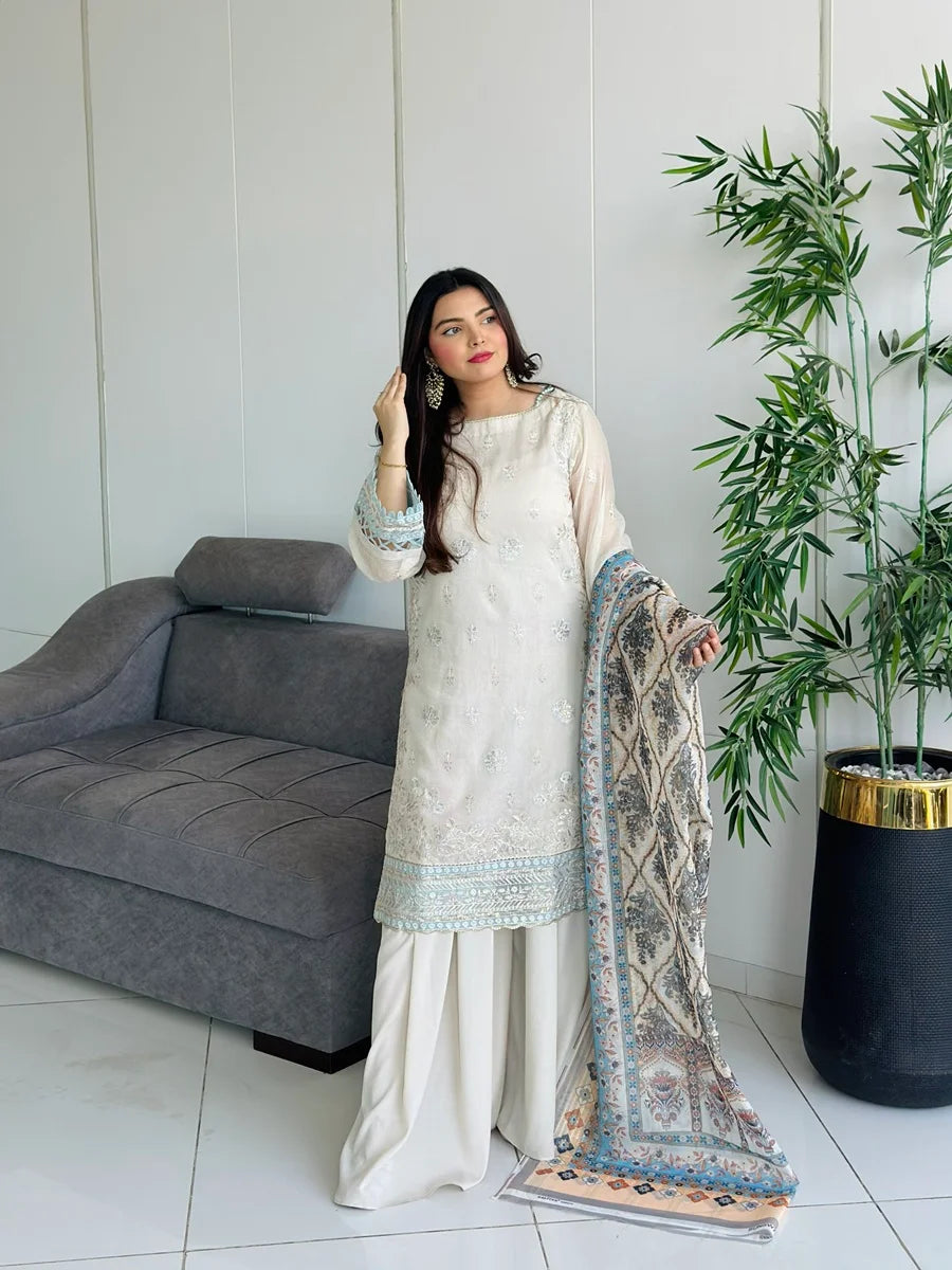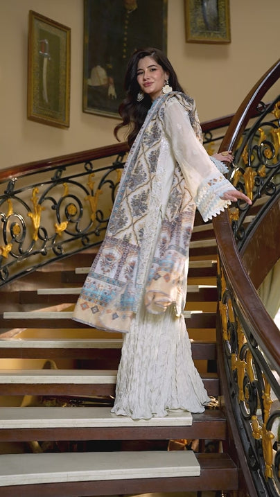 Shine brighter this season with Jashn-e-Noor, A stunning 3PC festive embroidered suit designed to enhance every celebration with effortless glamour and rich, intricate craftsmanship.