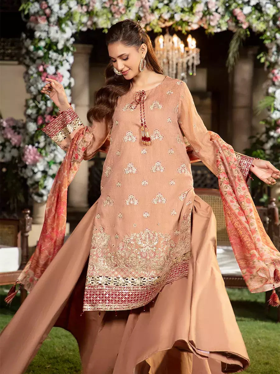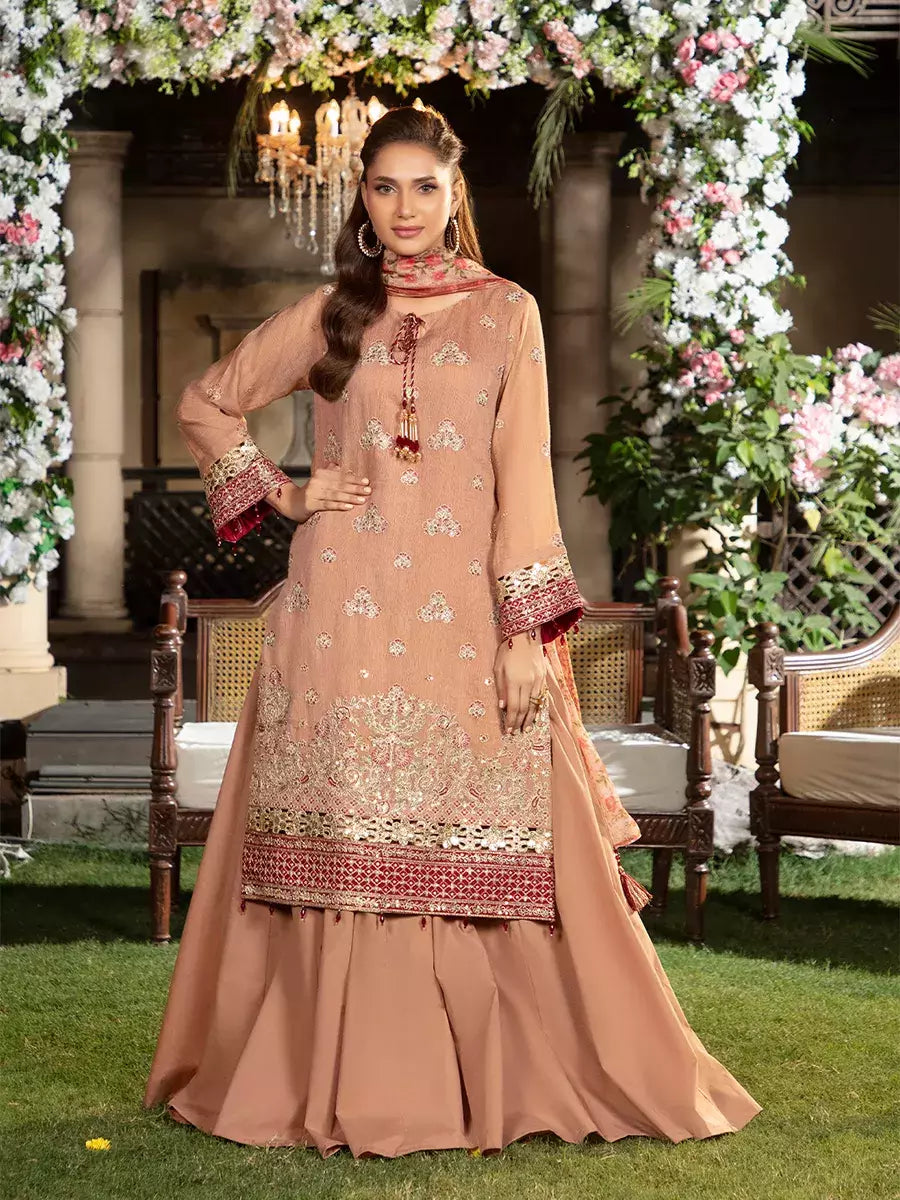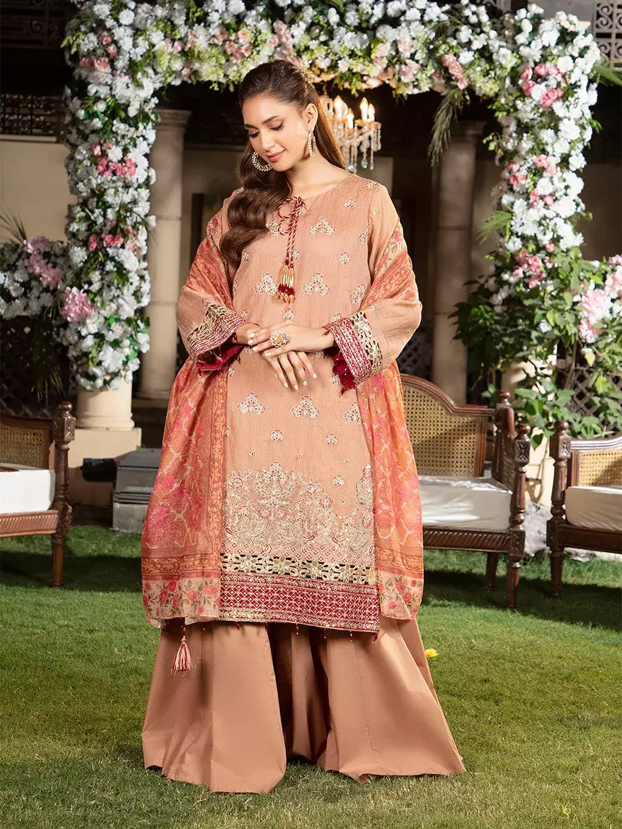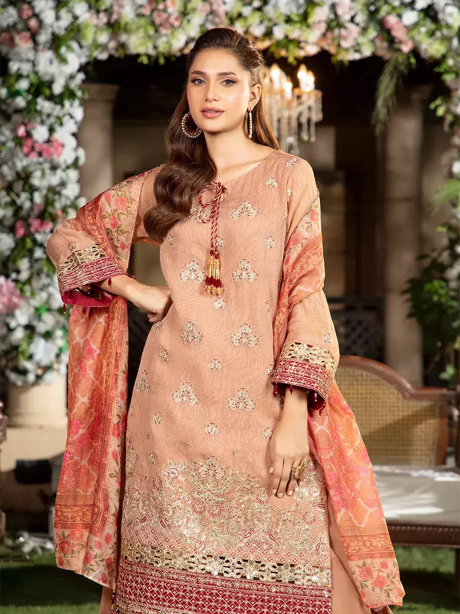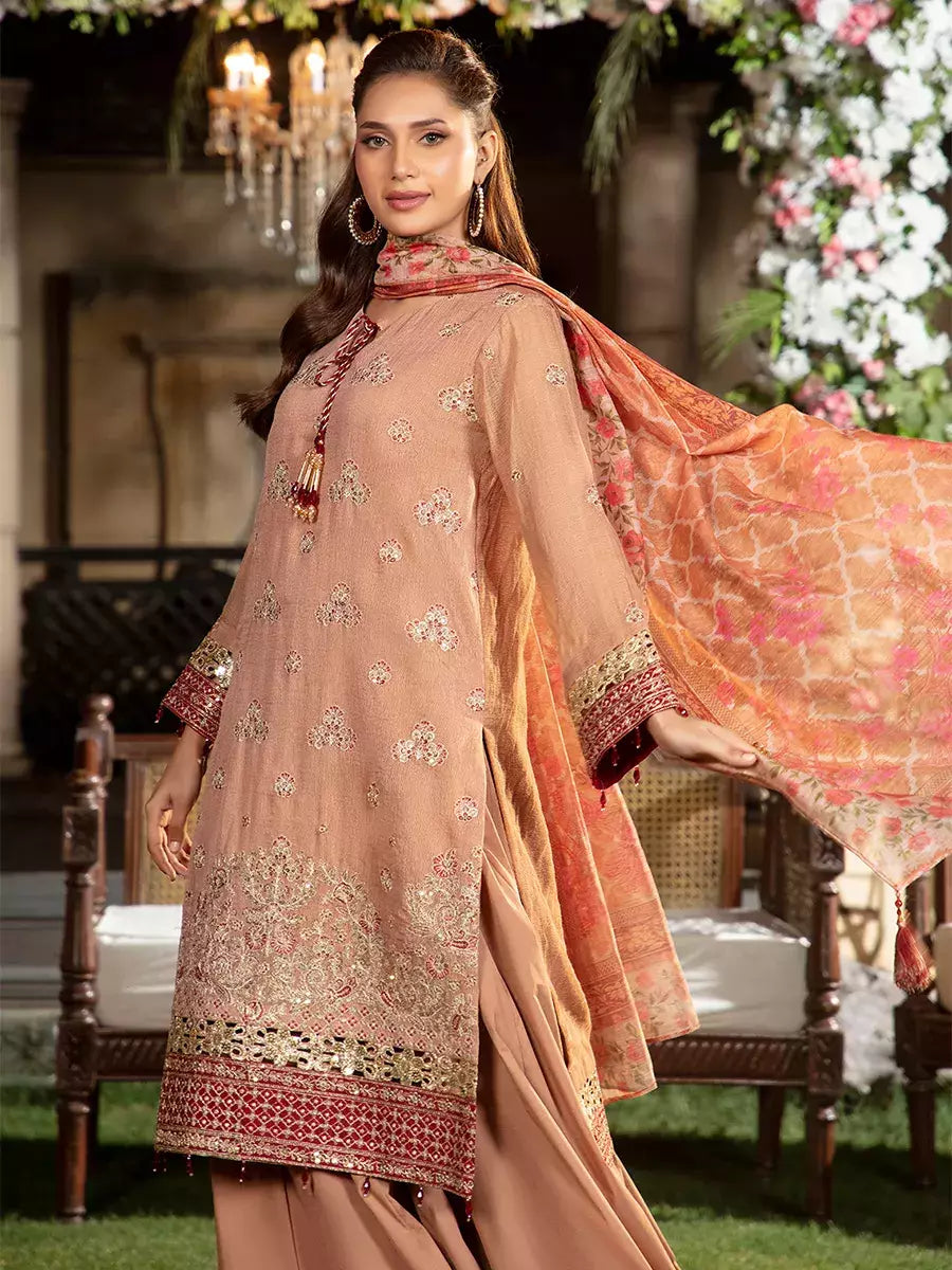 Shine brighter this season with Jashn-e-Noor, A stunning 3PC festive embroidered suit designed to enhance every celebration with effortless glamour and rich, intricate craftsmanship.