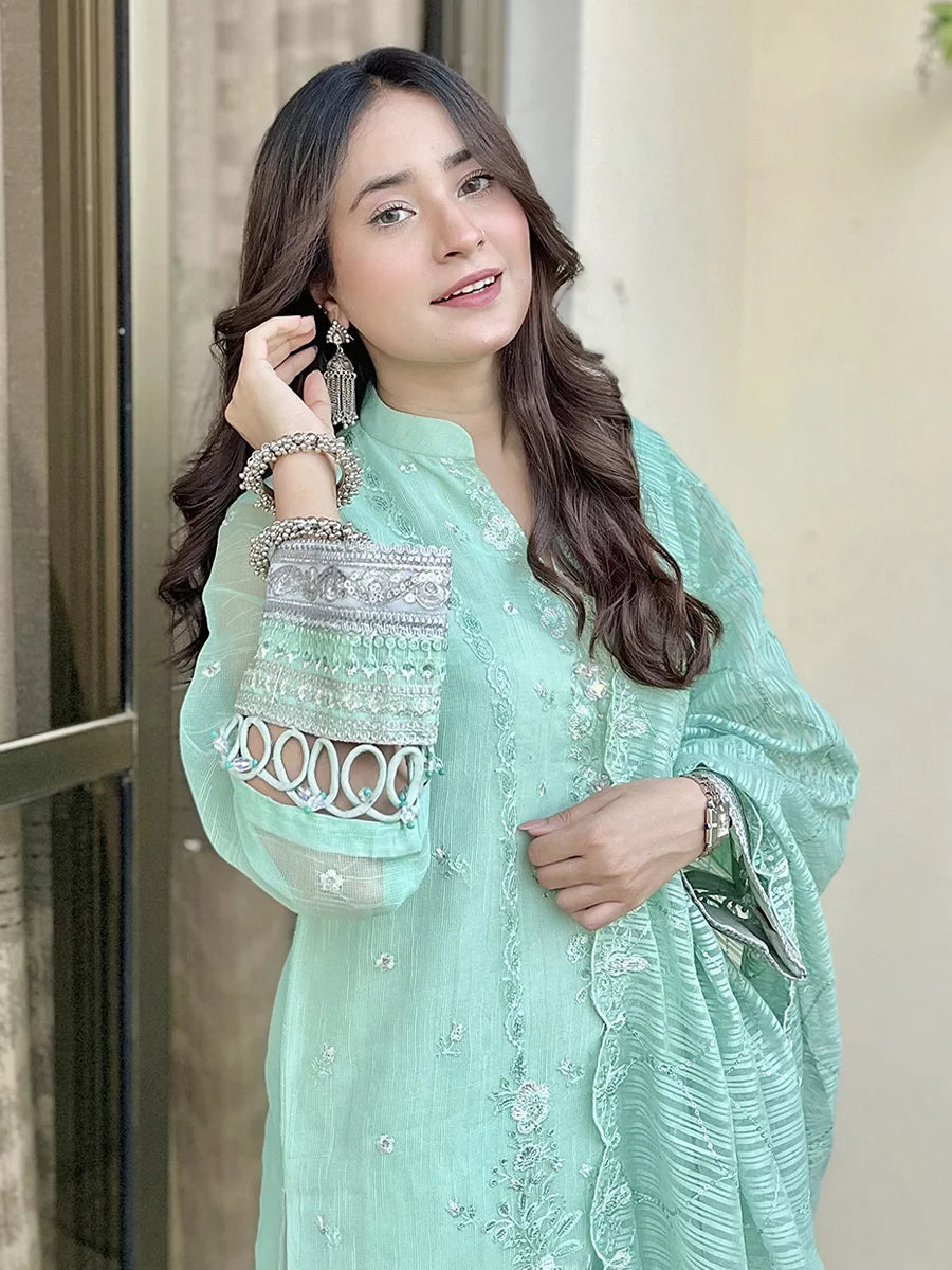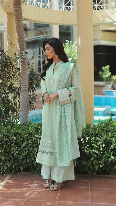 Shine brighter this season with Jashn-e-Noor, A stunning 3PC festive embroidered suit designed to enhance every celebration with effortless glamour and rich, intricate craftsmanship.