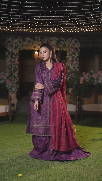 Shine brighter this season with Jashn-e-Noor, A stunning 3PC festive embroidered suit designed to enhance every celebration with effortless glamour and rich, intricate craftsmanship.