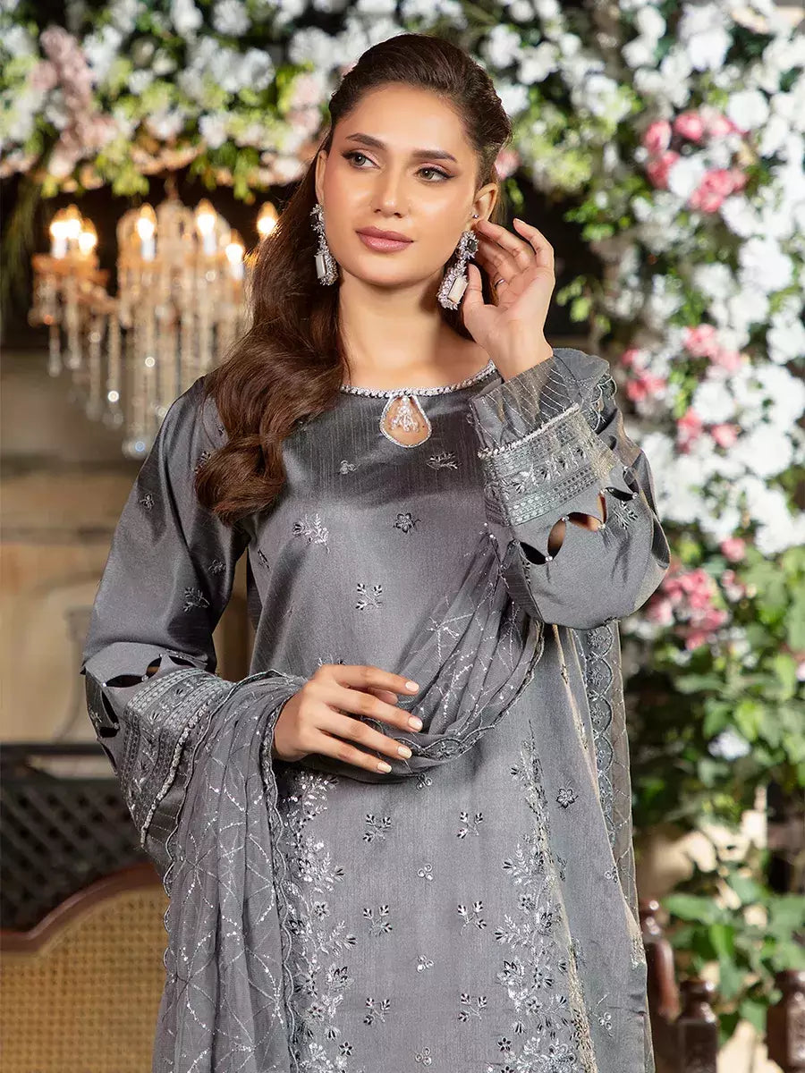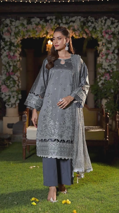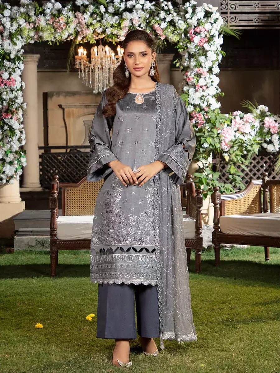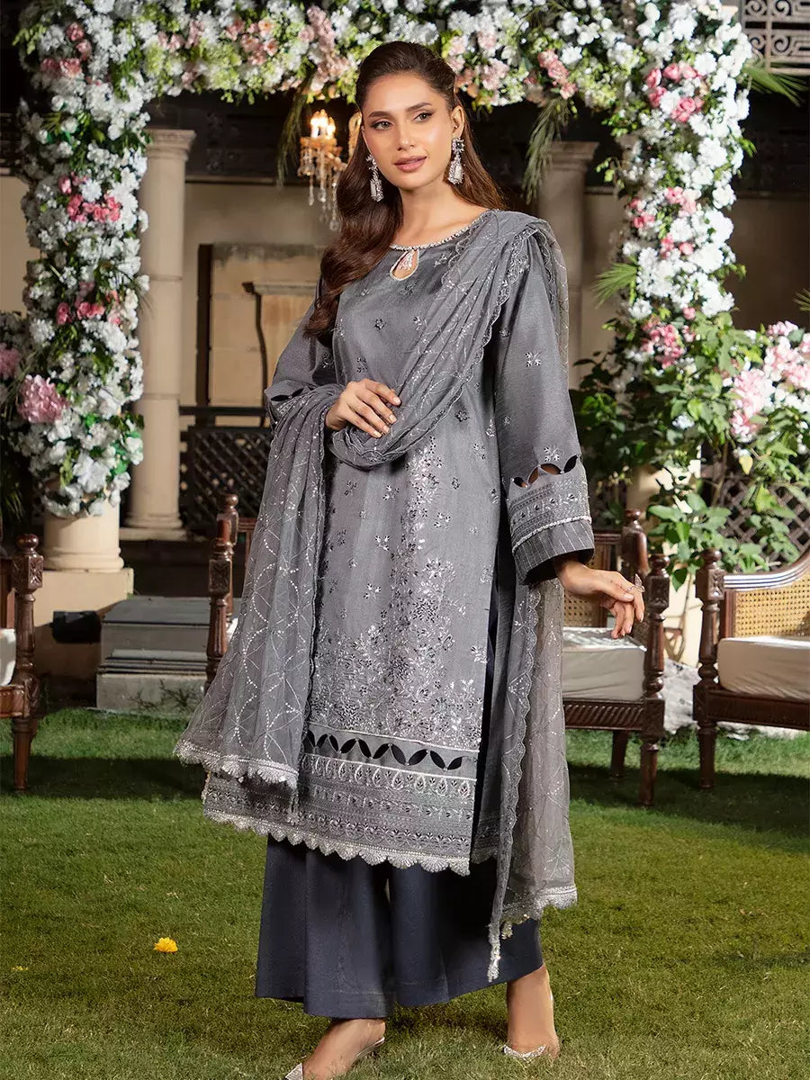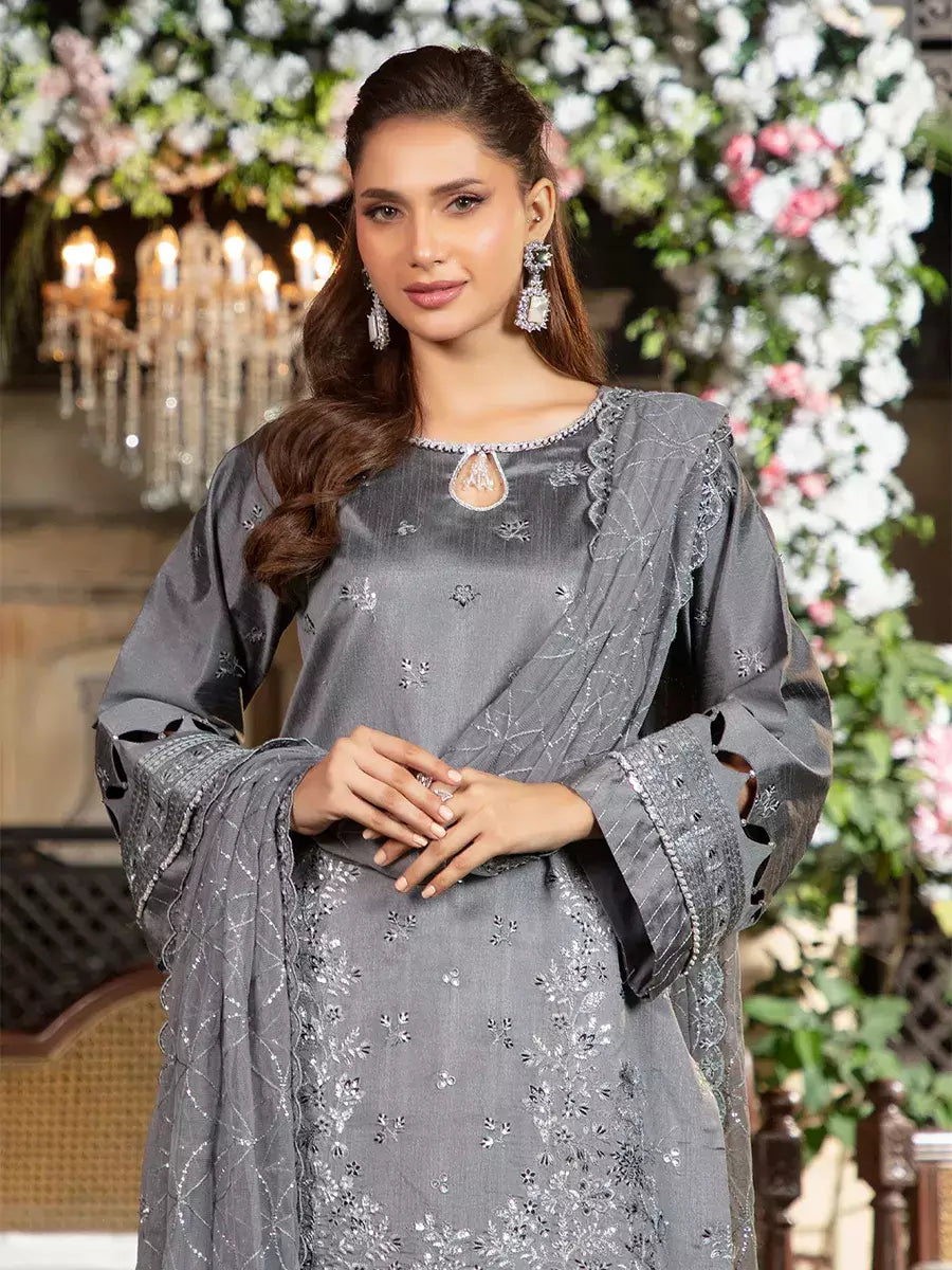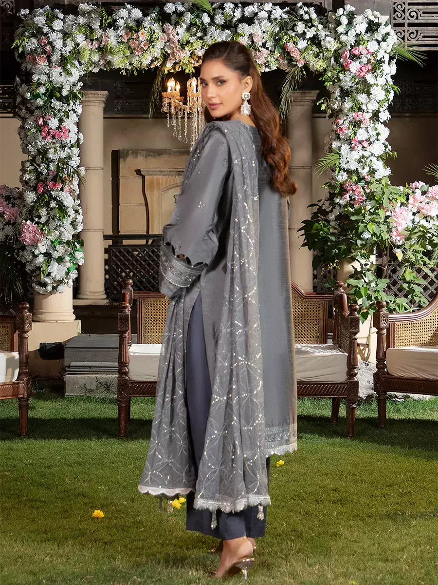 Shine brighter this season with Jashn-e-Noor, A stunning 3PC festive embroidered suit designed to enhance every celebration with effortless glamour and rich, intricate craftsmanship.