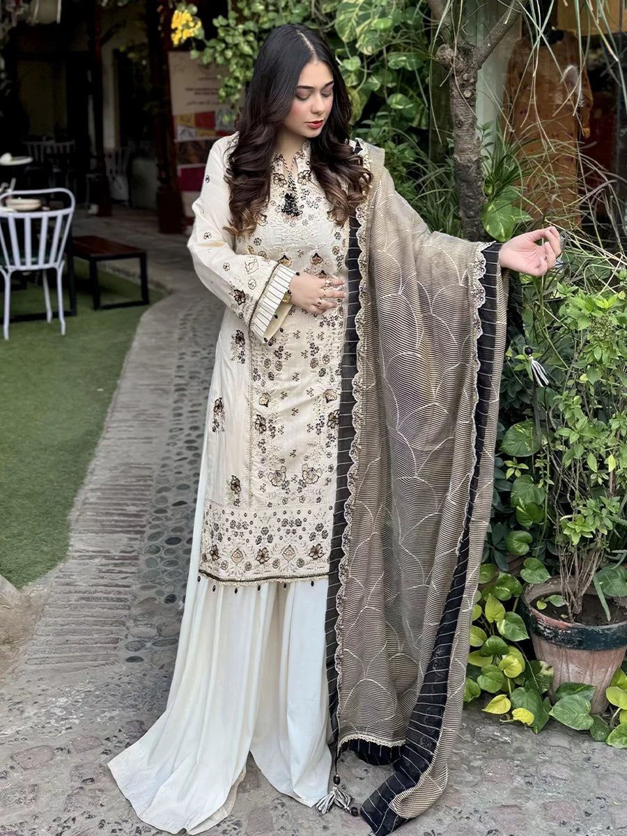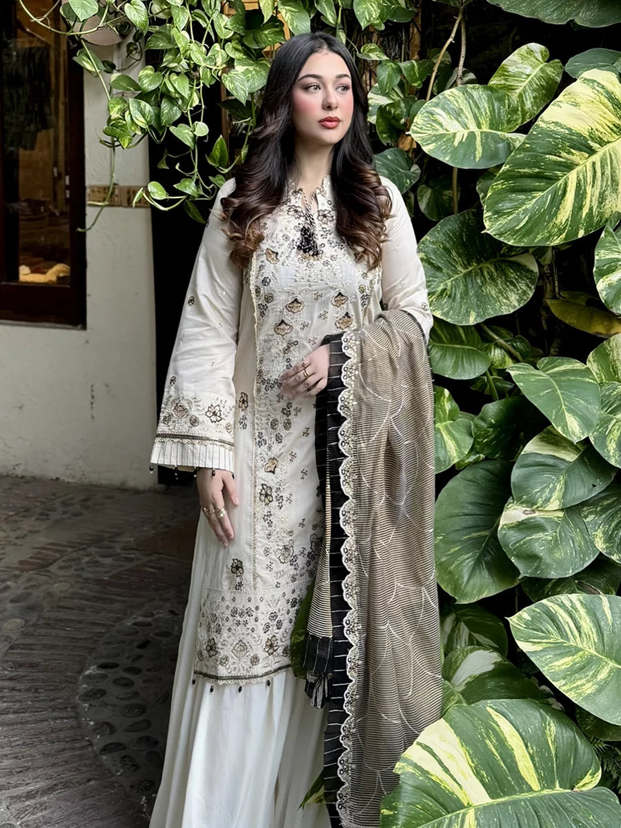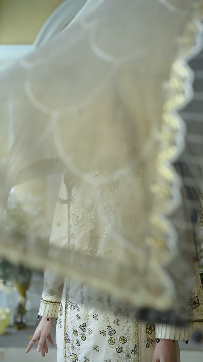 Shine brighter this season with Jashn-e-Noor, A stunning 3PC festive embroidered suit designed to enhance every celebration with effortless glamour and rich, intricate craftsmanship.