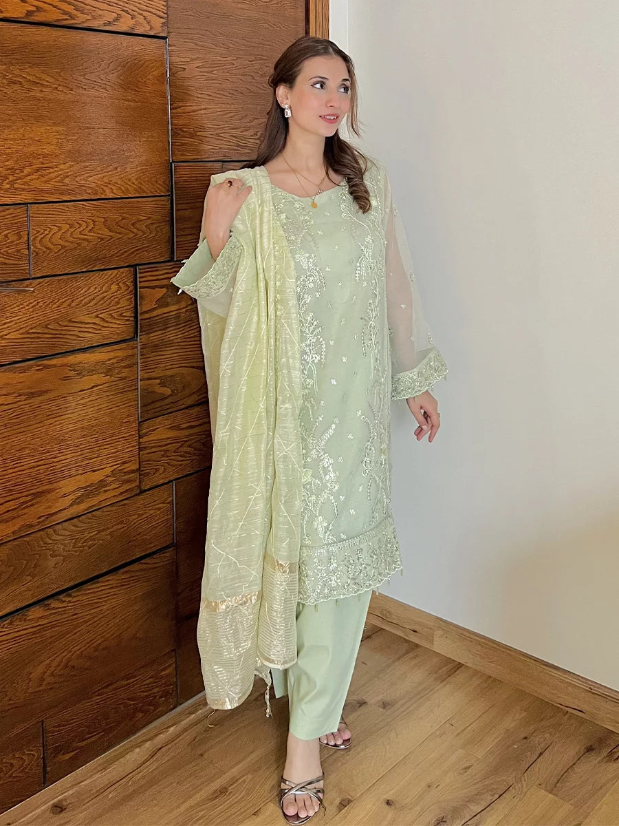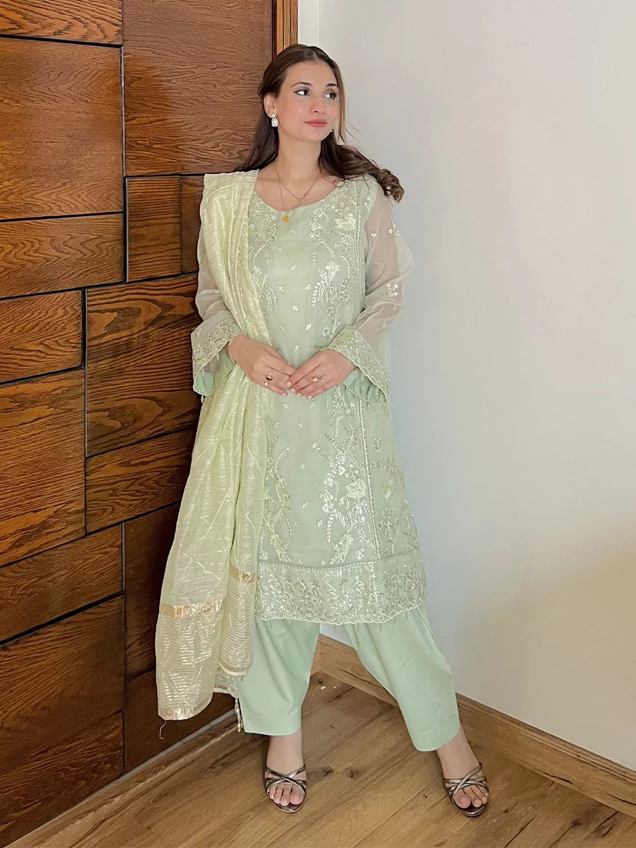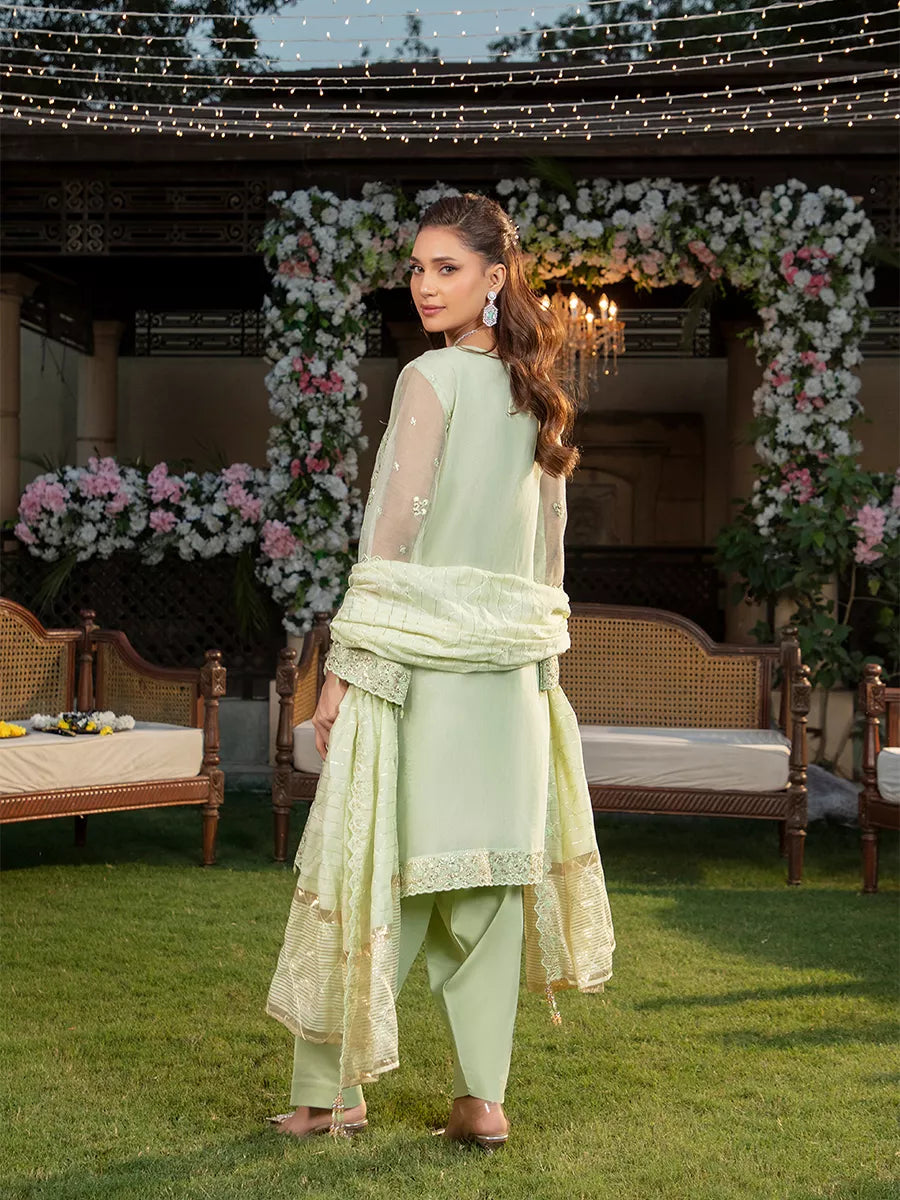 Shine brighter this season with Jashn-e-Noor, A stunning 3PC festive embroidered suit designed to enhance every celebration with effortless glamour and rich, intricate craftsmanship.