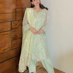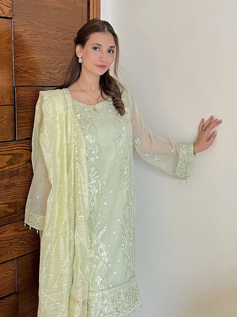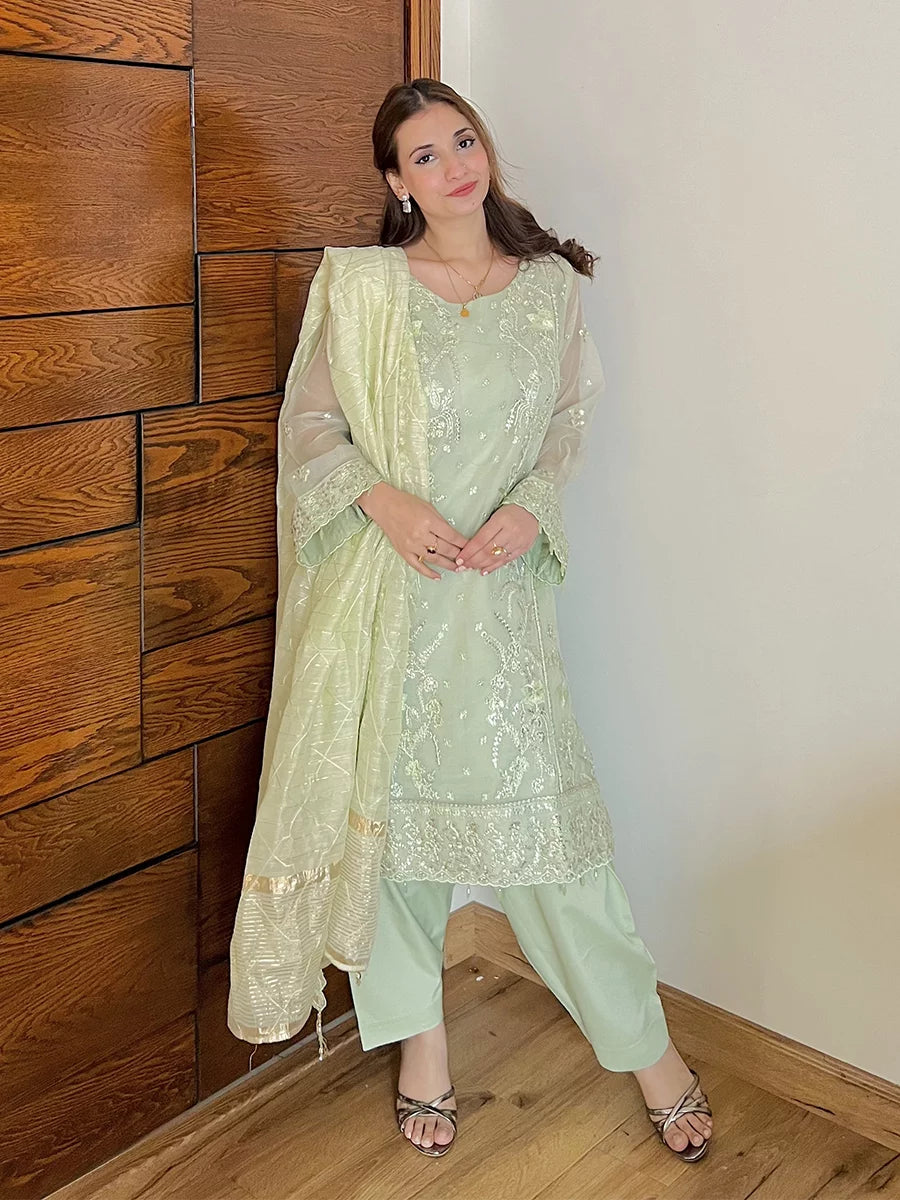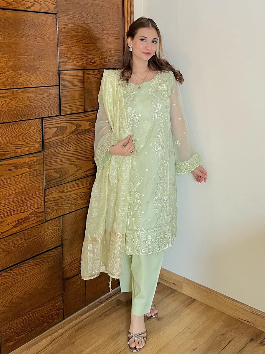 Shine brighter this season with Jashn-e-Noor, A stunning 3PC festive embroidered suit designed to enhance every celebration with effortless glamour and rich, intricate craftsmanship.