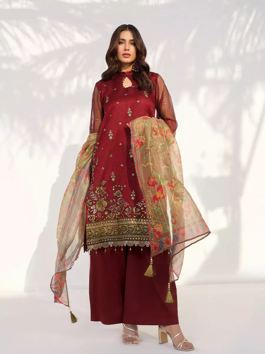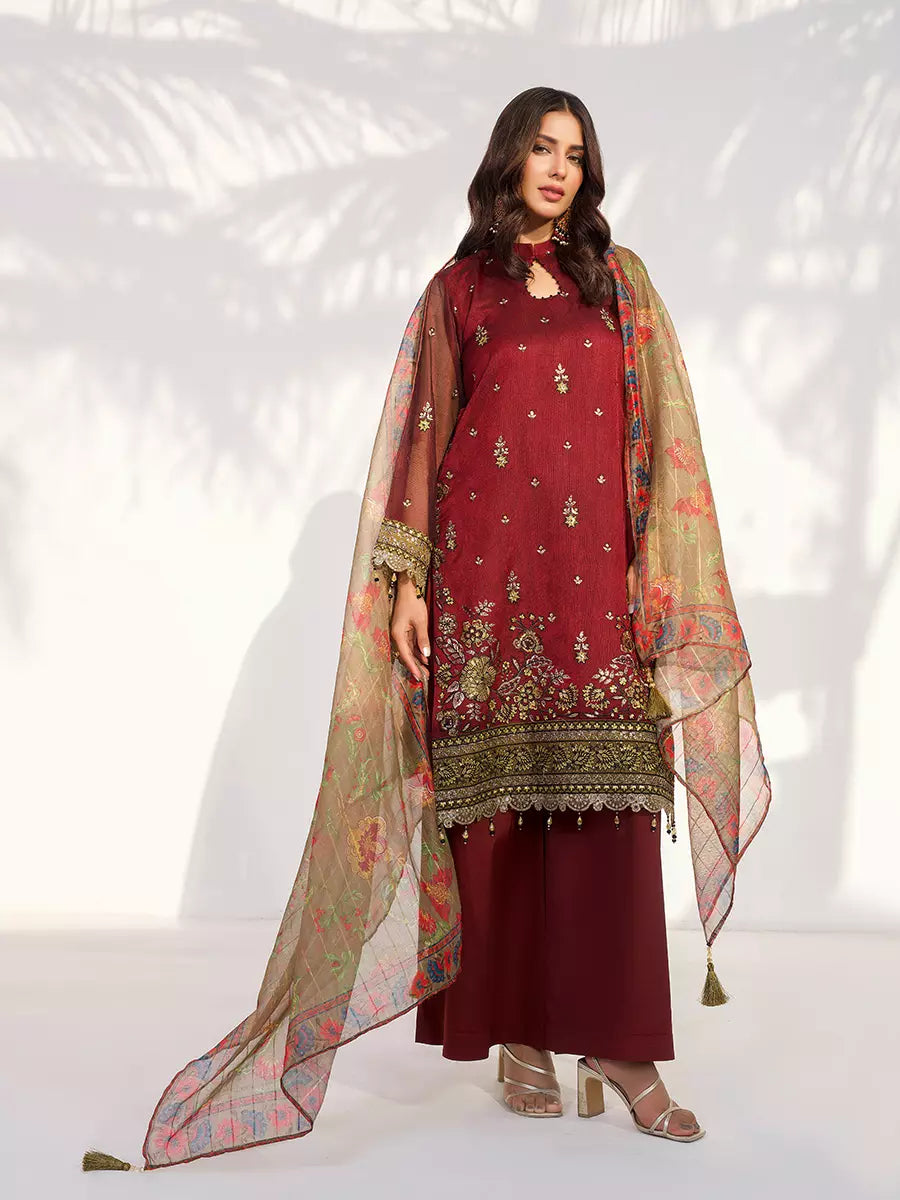 Add charm to your wardrobe with this 3PC unstitched festive suit, featuring beautiful embroidery, premium fabric, and a timeless festive appeal.
