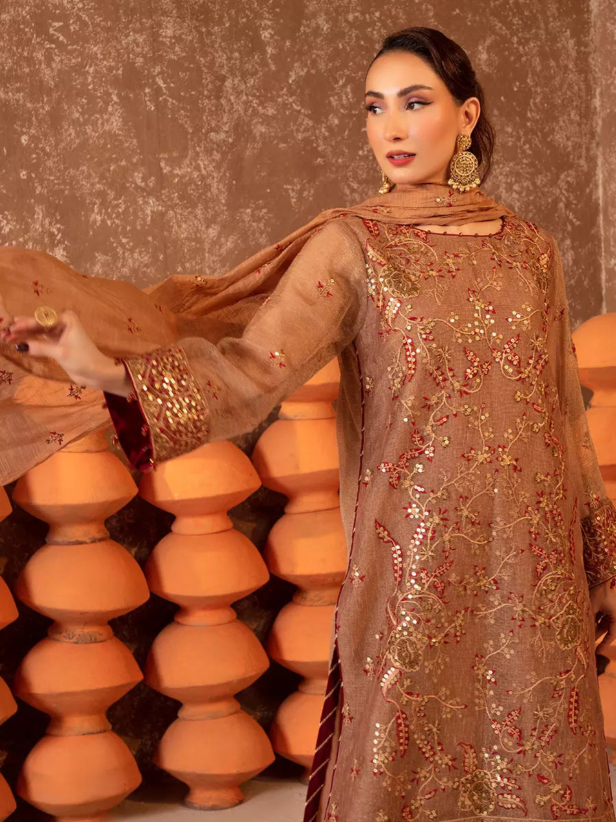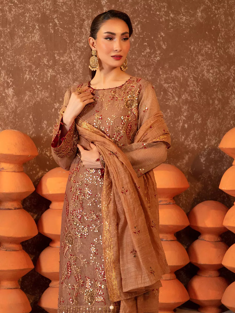 Celebrate every occasion in style with our 3PC unstitched festive embroidered suit. Designed on high-quality fabric with delicate embroidery, this ensemble brings a touch of tradition, luxury, and comfort — all within your reach.