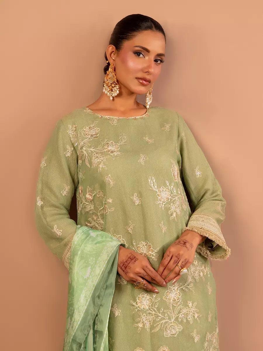 • Front Panel: Embroidered Khaddi Net (0.34 M)
