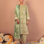 Celebrate tradition with our 3PC unstitched festive embroidered suit, crafted from premium fabric with elegant embroidery a versatile and stylish pick for any occasion.