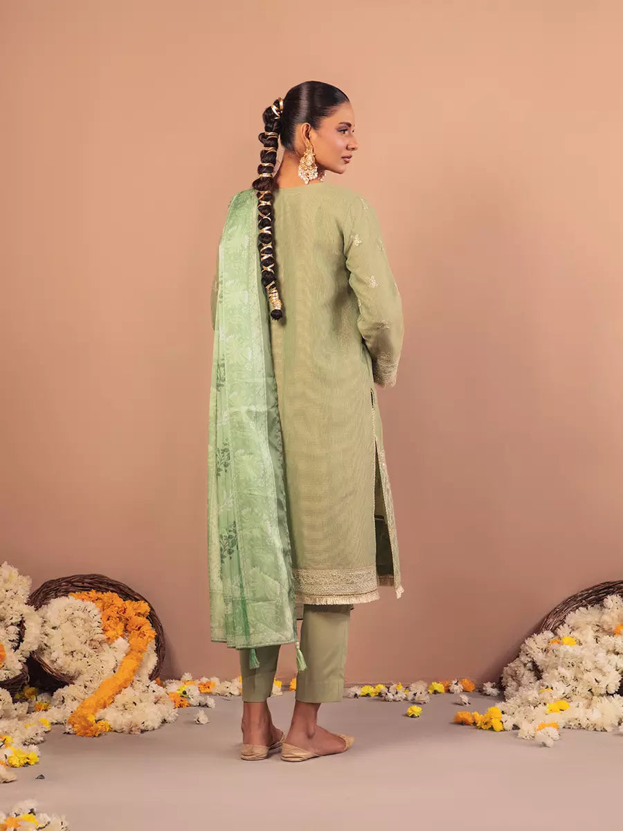 • Back Border: Embroidered Khaddi Net (0.76 M)