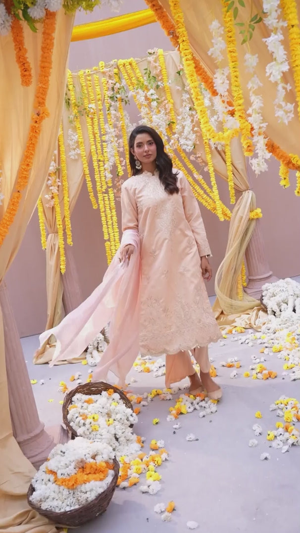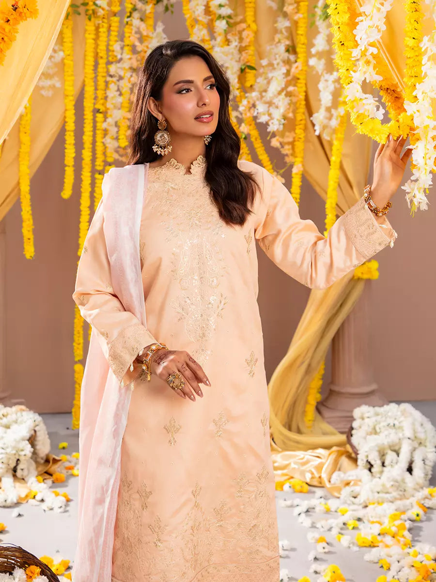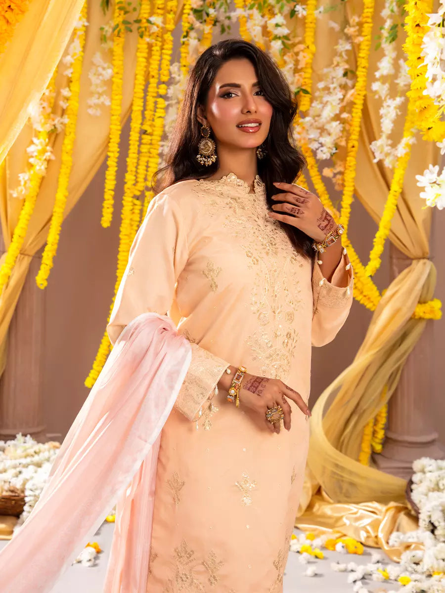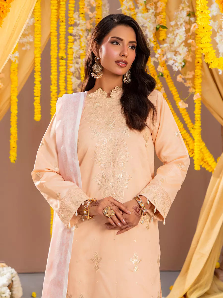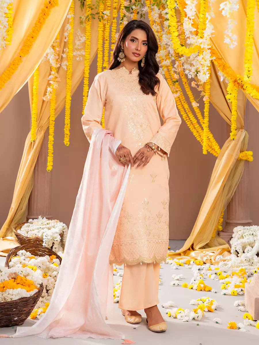 Celebrate tradition with our 3PC unstitched festive embroidered suit, crafted from premium fabric with elegant embroidery a versatile and stylish pick for any occasion.