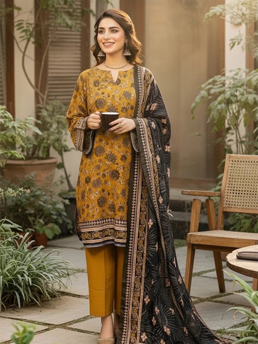 3PC Unstitched Khaddar Printed Suit (SSW6U3P838)