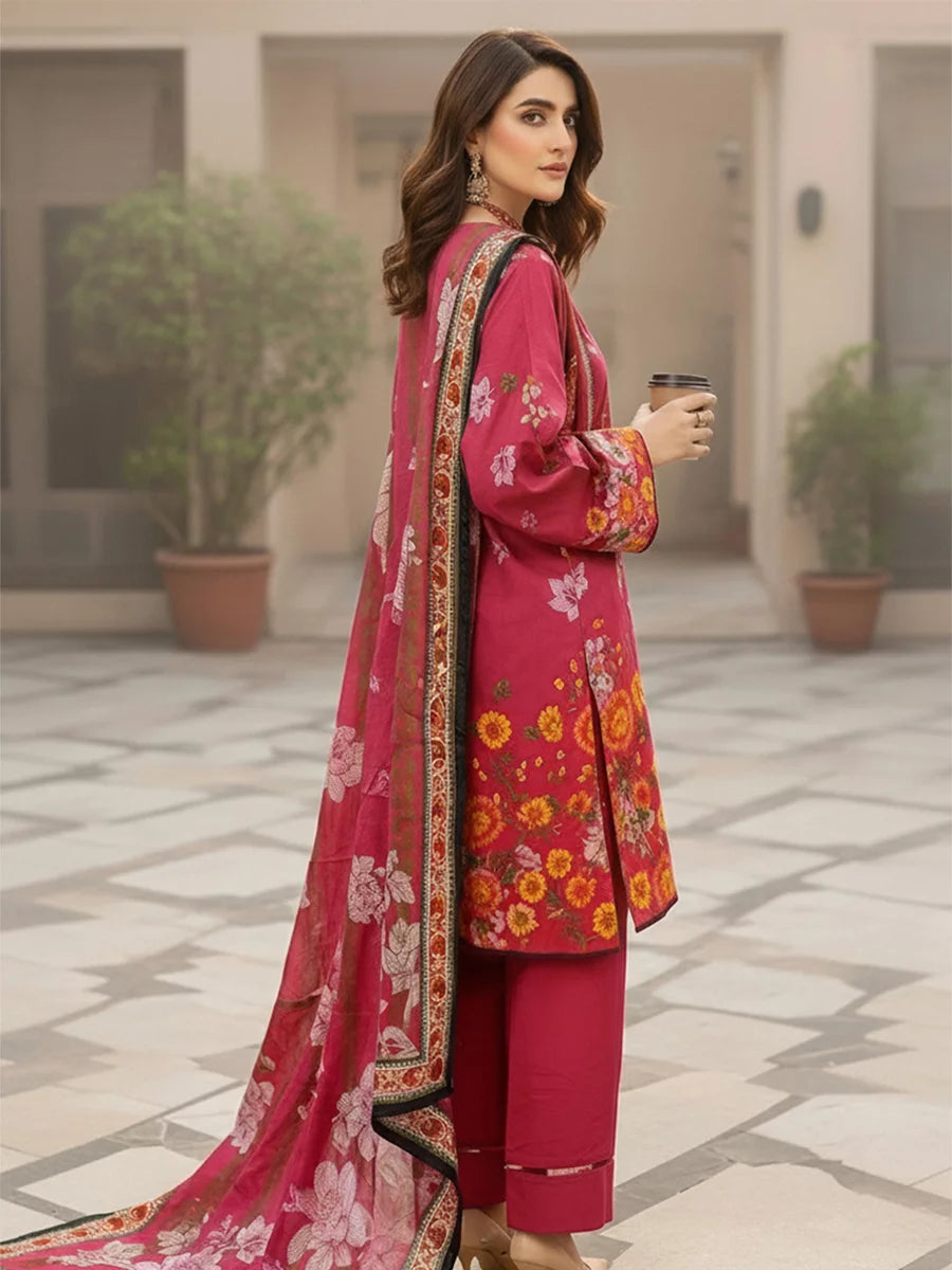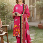 Elegant 3-piece khaddar suit featuring a beautifully printed khaddar shirt, printed khaddar dupatta, and a Plain trouser. Crafted from soft winter khaddar fabric, this outfit combines comfort with timeless floral charm, perfect for everyday elegance and seasonal style.