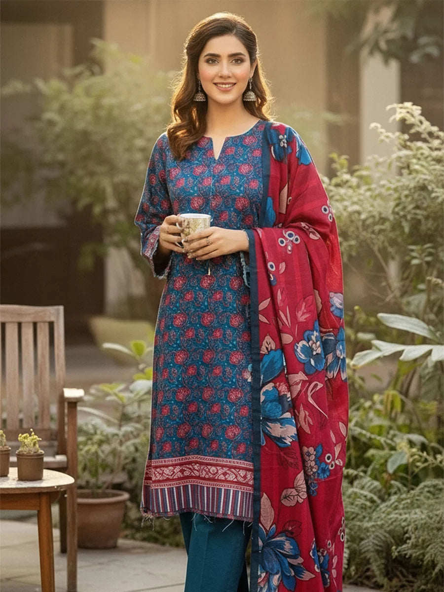 3PC Unstitched Khaddar Printed Suit (SSW6U3P845)