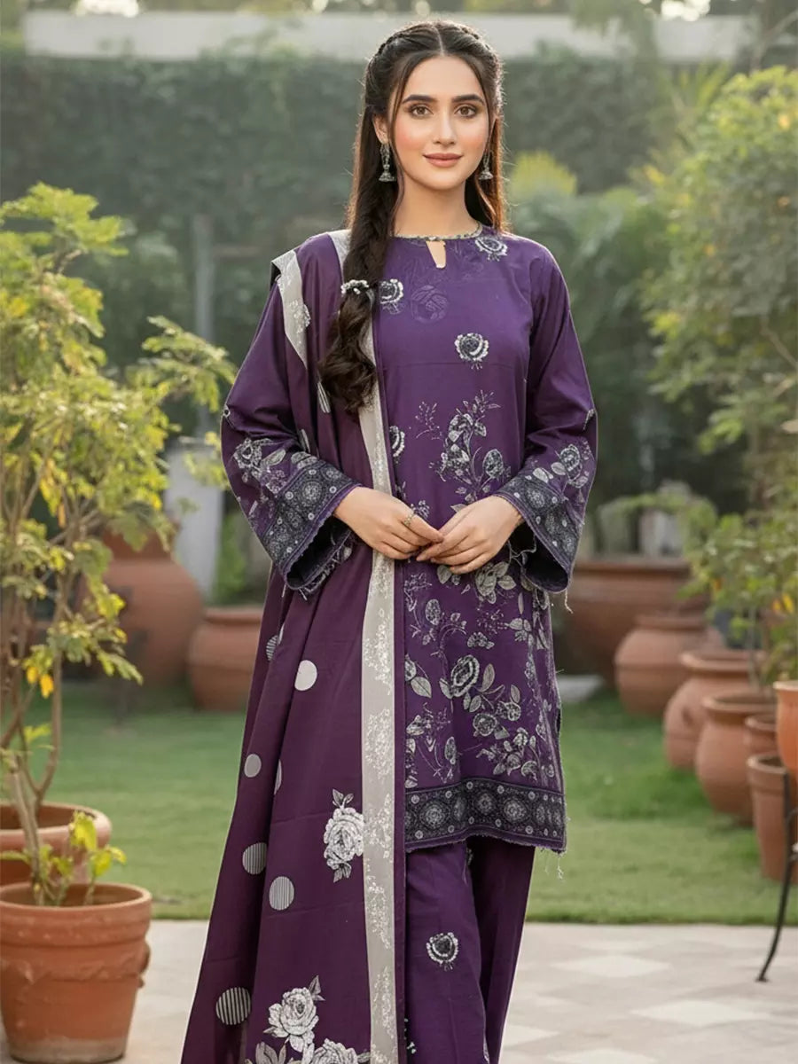 3PC Unstitched Khaddar Printed Suit (SUNS7ASI511)
