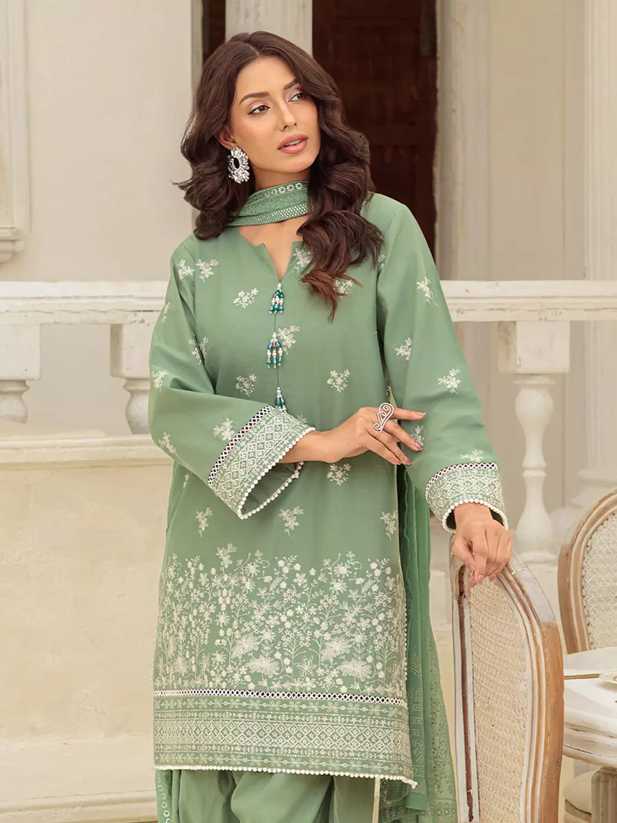 3PC Unstitched Cambric Embroidered Mukesh Dupatta SUIT (UNS7MK001)