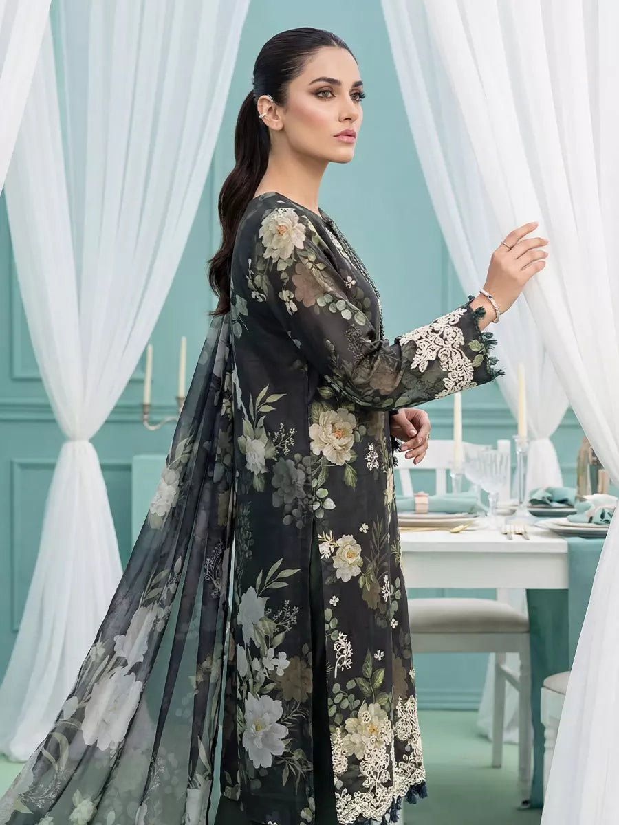 3PC Unstitched Lawn Printed Embroidered Suit (SUNS8FS212)