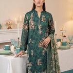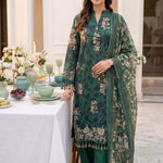 Elevate your festive look with Our 3PC Unstitched Festive Embroidered Suit. It features an embroidered lawn shirt, embroidered dupatta, and dyed cambric trousers, crafted with quality fabric and elegant detailing, perfect for festive and special occasions.