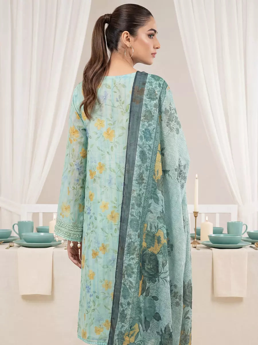 3PC Unstitched Lawn Printed Embroidered Suit (SUNS8FS220)