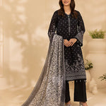 Style up your wardrobe with 3-Piece Unstitched Black & white Lawn Collection. Featuring a vibrant Lawn printed shirt, cambric dyed trouser, and a beautifully Lawn printed dupatta.