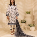 Style up your wardrobe with 3-Piece Unstitched Black & white Lawn Collection. Featuring a vibrant Lawn printed shirt, cambric dyed trouser, and a beautifully Lawn printed dupatta.