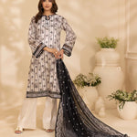 Style up your wardrobe with 3-Piece Unstitched Black & white Lawn Collection. Featuring a vibrant Lawn printed shirt, cambric dyed trouser, and a beautifully Lawn printed dupatta.