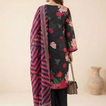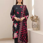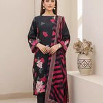 A beautiful 3PC unstitched suit with a printed lawn shirt, printed lawn dupatta, and dyed cambric trouser, designed for a fresh and elegant daily look.