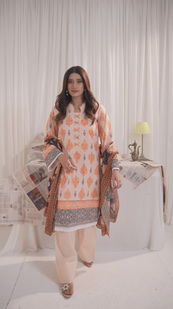 Style up your wardrobe with 3-Piece Unstitched Lawn Collection. Featuring a vibrant printed shirt, cambric dyed trouser, and a beautifully printed dupatta.
