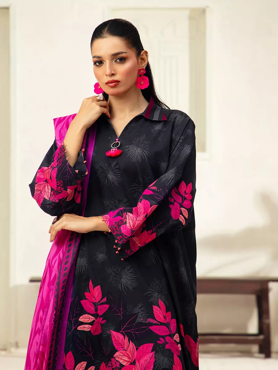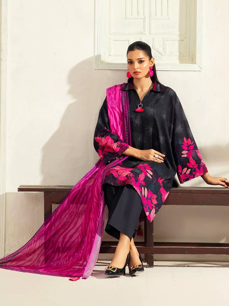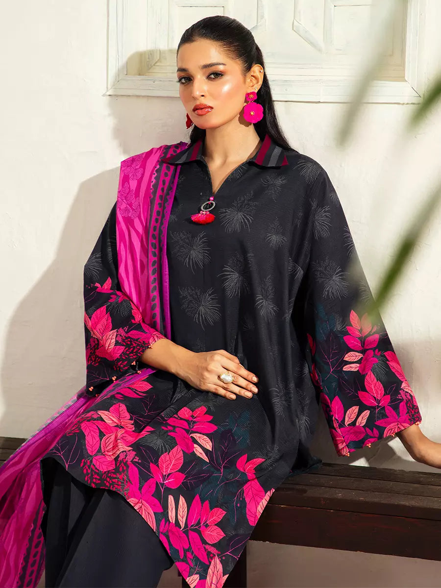 Style up your wardrobe with 3-Piece Unstitched Lawn Collection. Featuring a vibrant Lawn printed shirt, cambric dyed trouser, and a beautifully Lawn printed dupatta.