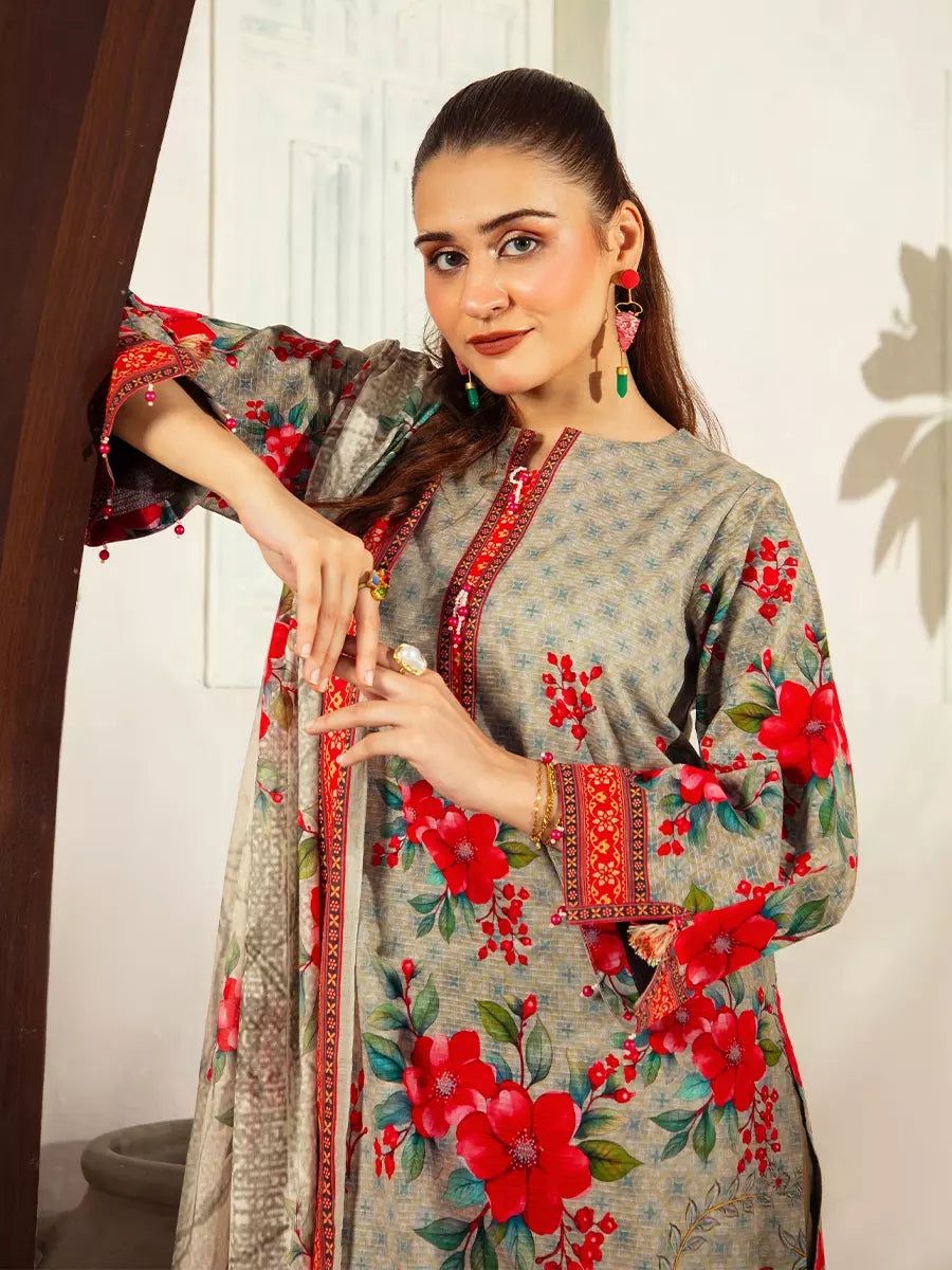 Style up your wardrobe with 3-Piece Unstitched Lawn Collection. Featuring a vibrant Lawn printed shirt, cambric dyed trouser, and a beautifully Lawn printed dupatta.