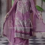 Embrace elegance and charm with this stunning lilac masterpiece. Crafted from the finest chiffon, this luxurious piece is adorned with intricate embroidery and shimmering sequin work, adding a touch of sophistication to its delicate hue. Perfect for weddings and formal events, this exquisite ensemble in lilac promises to make you the center of attention with its timeless beauty and refined detailingn.