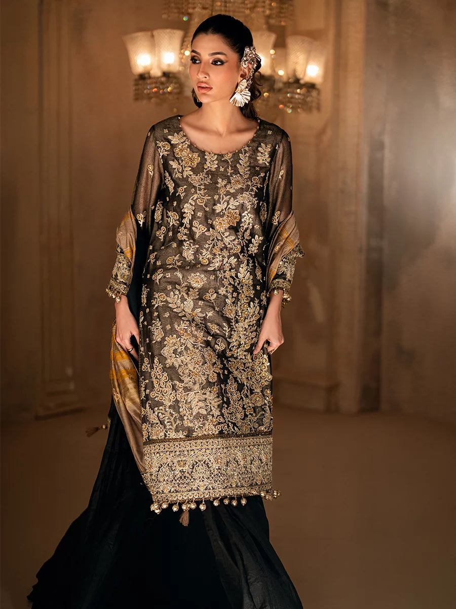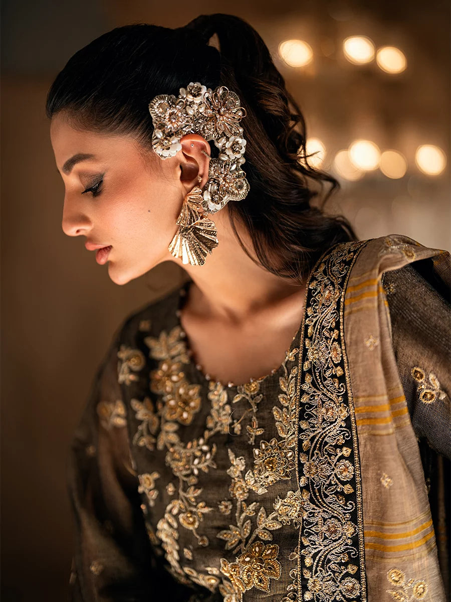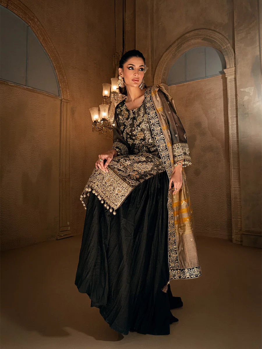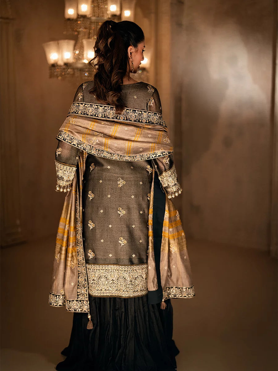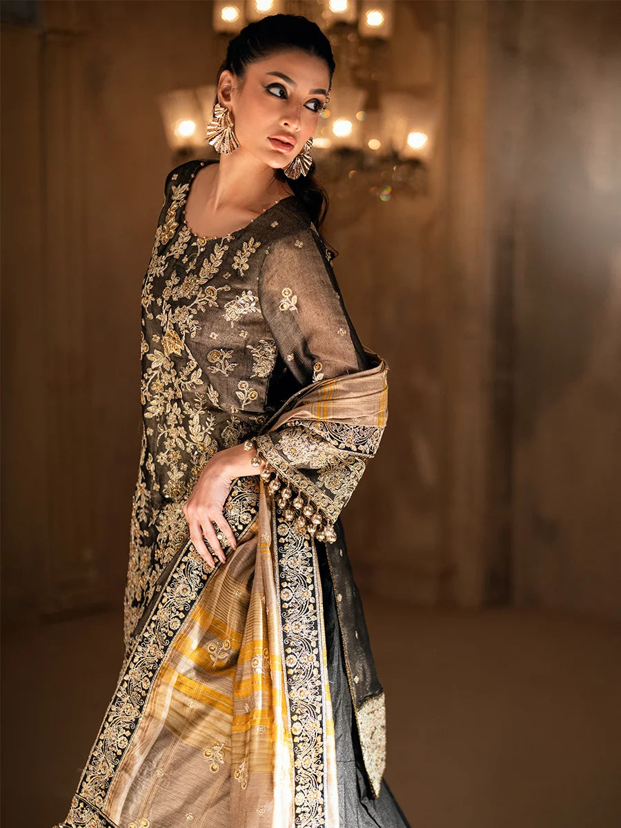 3PC unstitched luxury formal suit features delicate hand-worked details, an elegantly embroidered dupatta, and a premium raw silk trouser. Designed to create a graceful and sophisticated formal look.