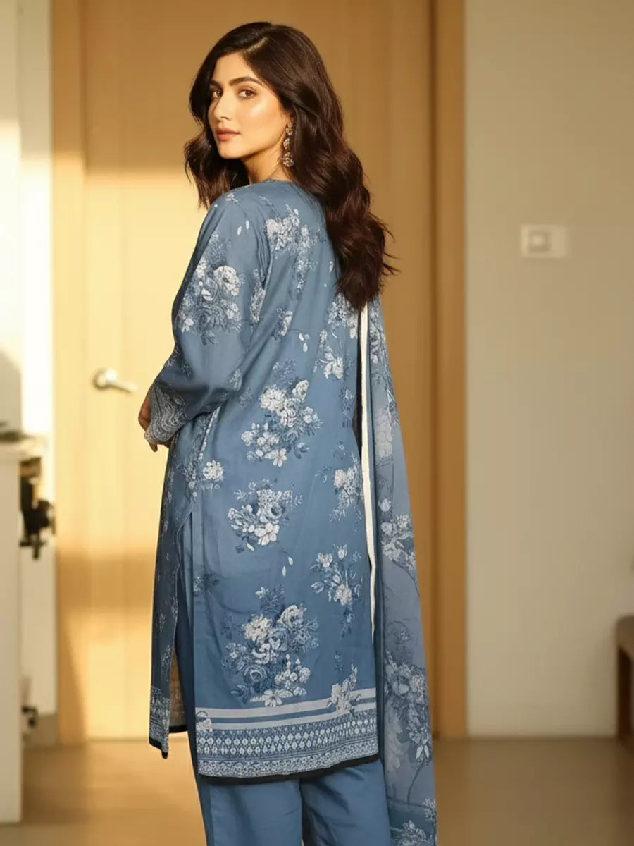 Style up your wardrobe with 3-Piece Unstitched Cambric Collection. Featuring a vibrant Cambric printed shirt, cambric dyed trouser, and a beautifully Lawn printed dupatta.