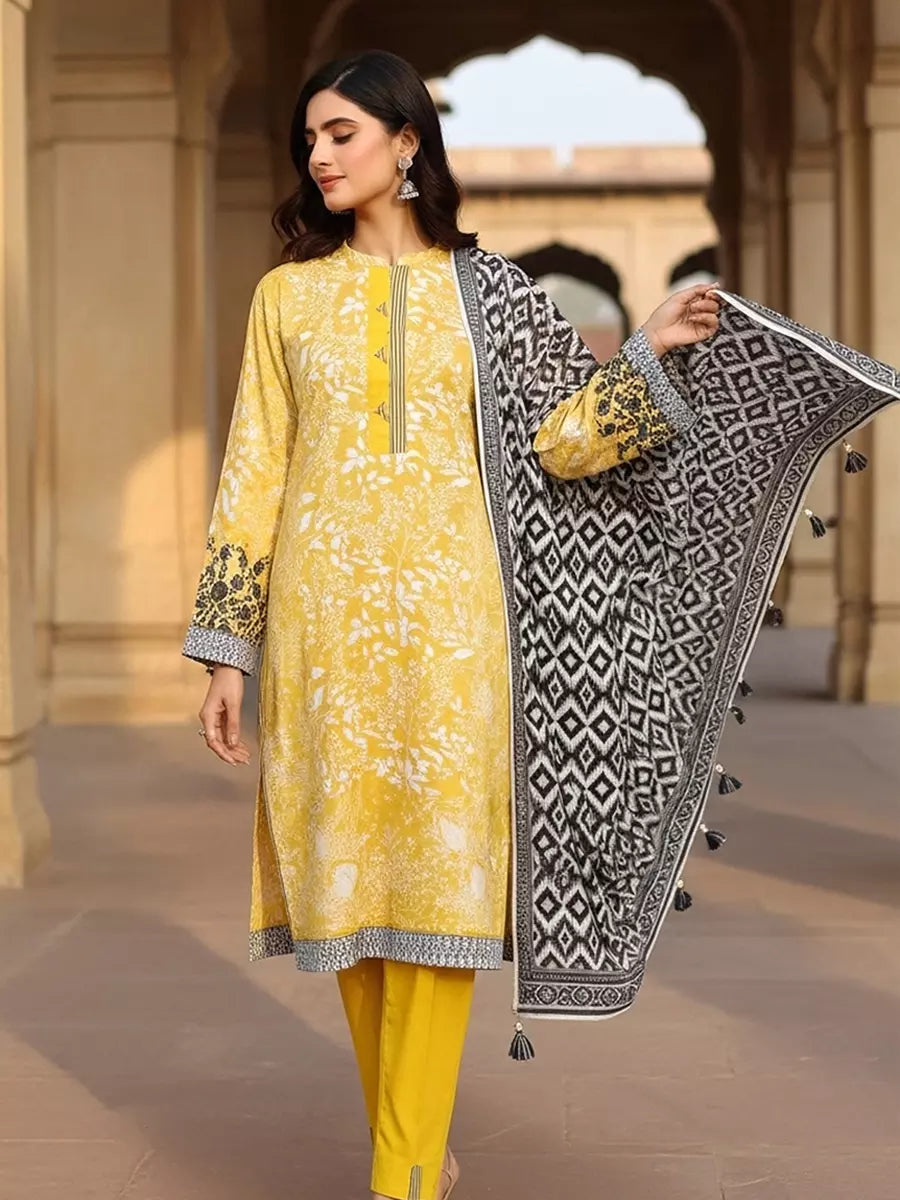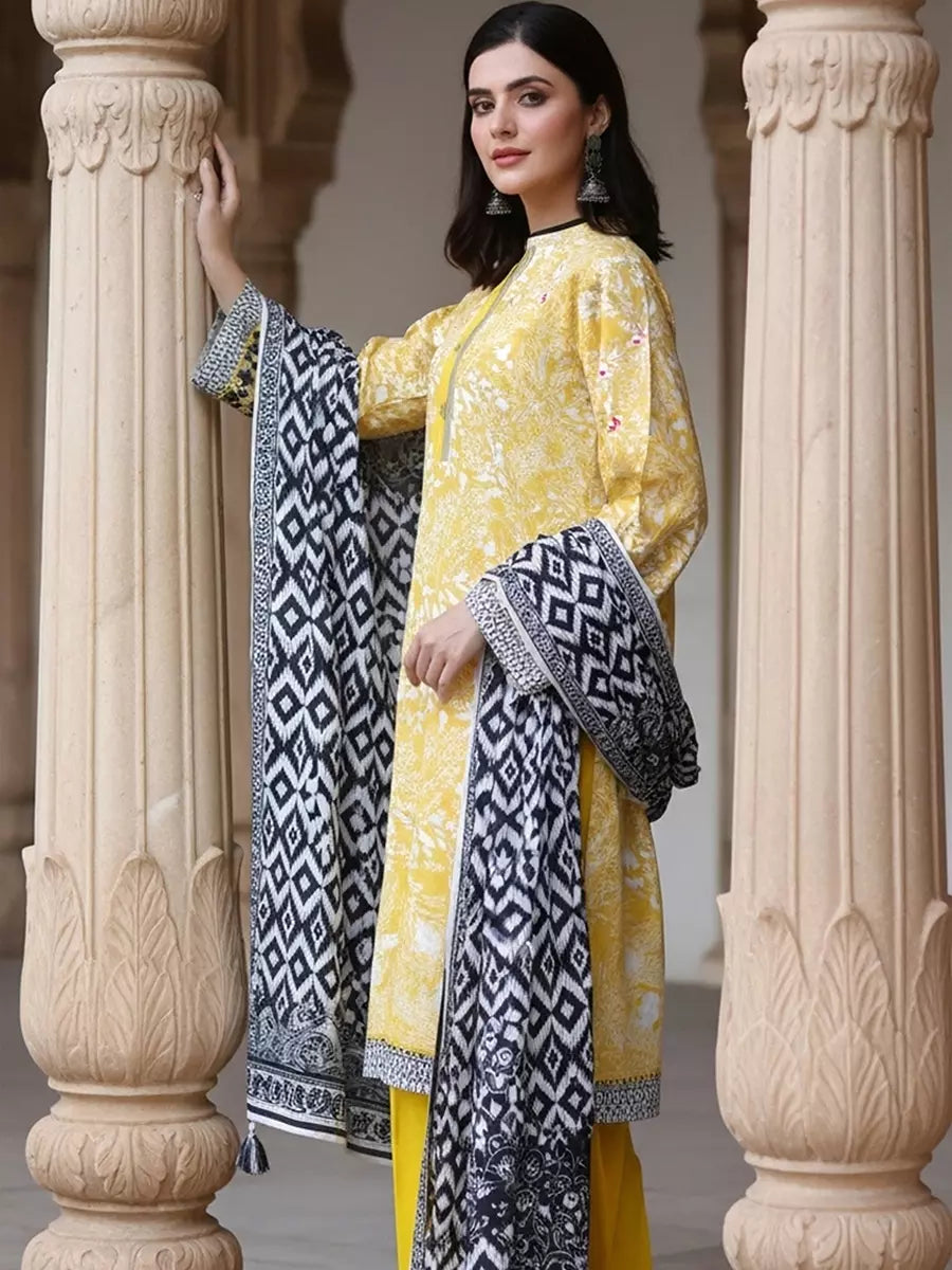 3PC Unstitched Printed Cambric Suit (SSW6U3P386)
