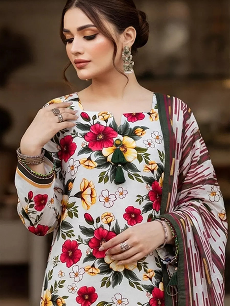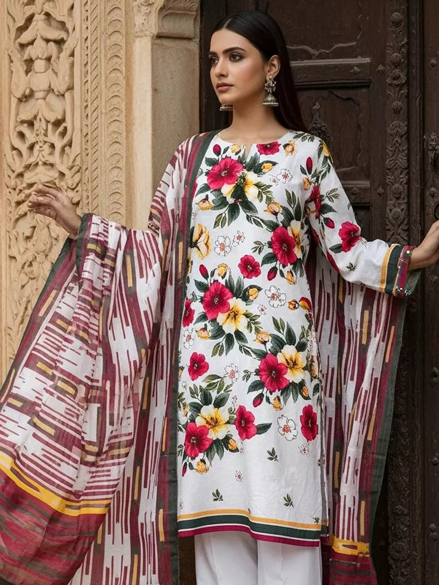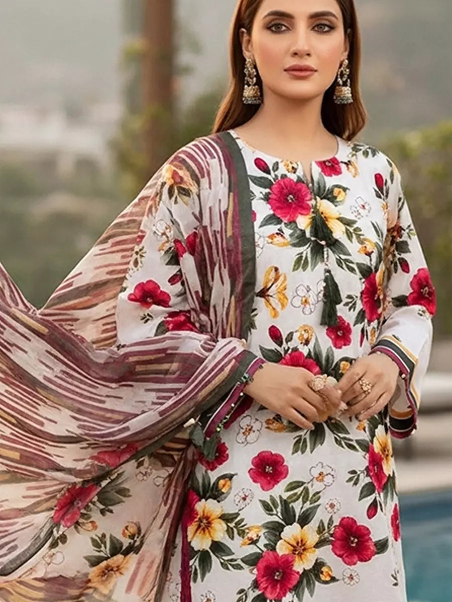 3PC Unstitched Printed Cambric Suit (SSW6U3P392)