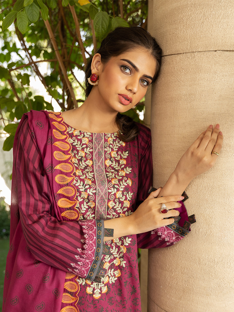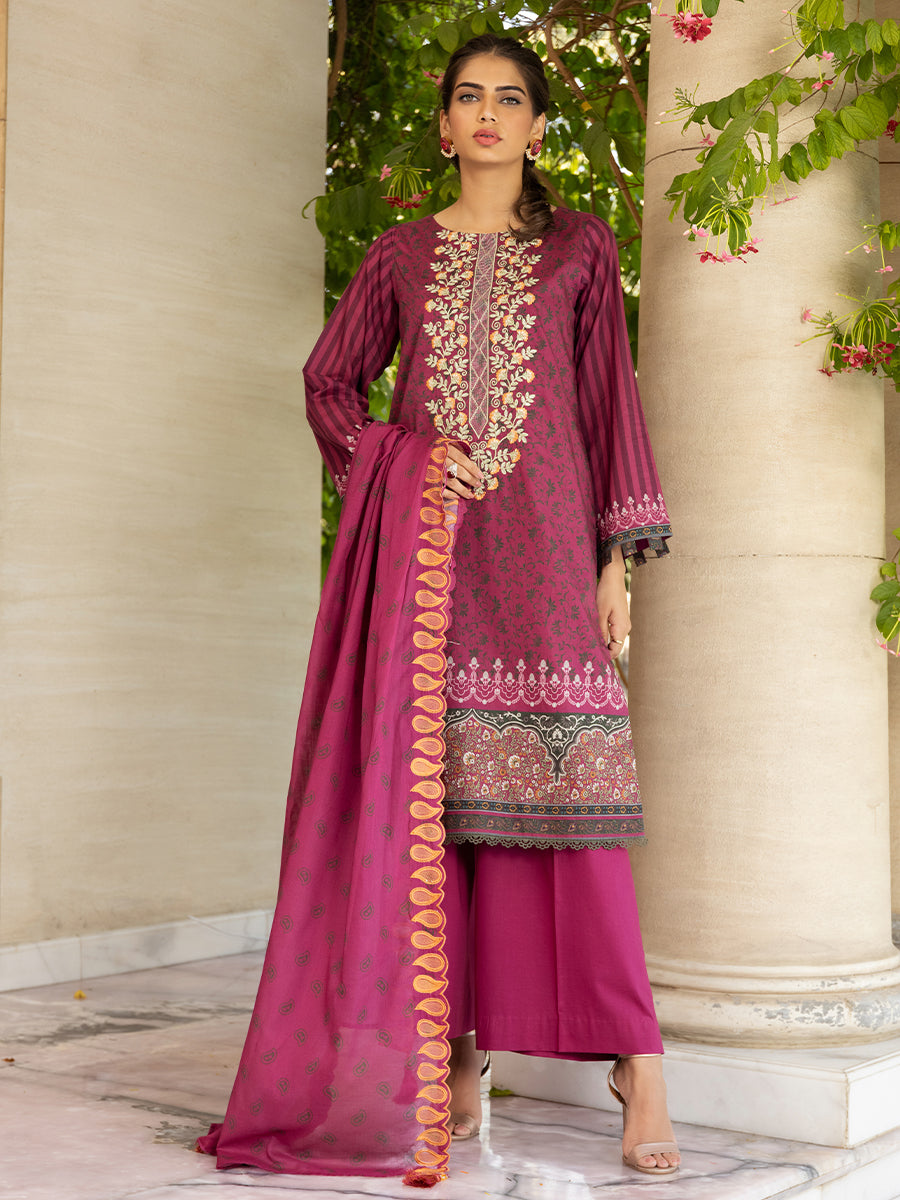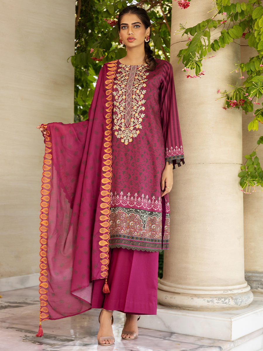 3pc Unstitched- Printed Embroidered Lawn Suit