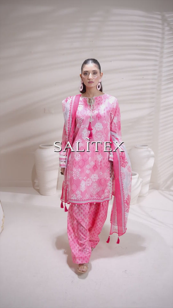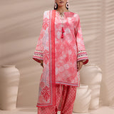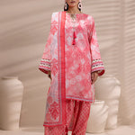 Elegant 3-piece suit in premium printed lawn silk. Includes a breathable shirt, trousers, and a lightweight dupatta. Perfect for any occasion.