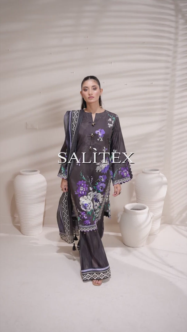 Elegant 3-piece suit in premium printed lawn silk. Includes a breathable shirt, trousers, and a lightweight dupatta. Perfect for any occasion.