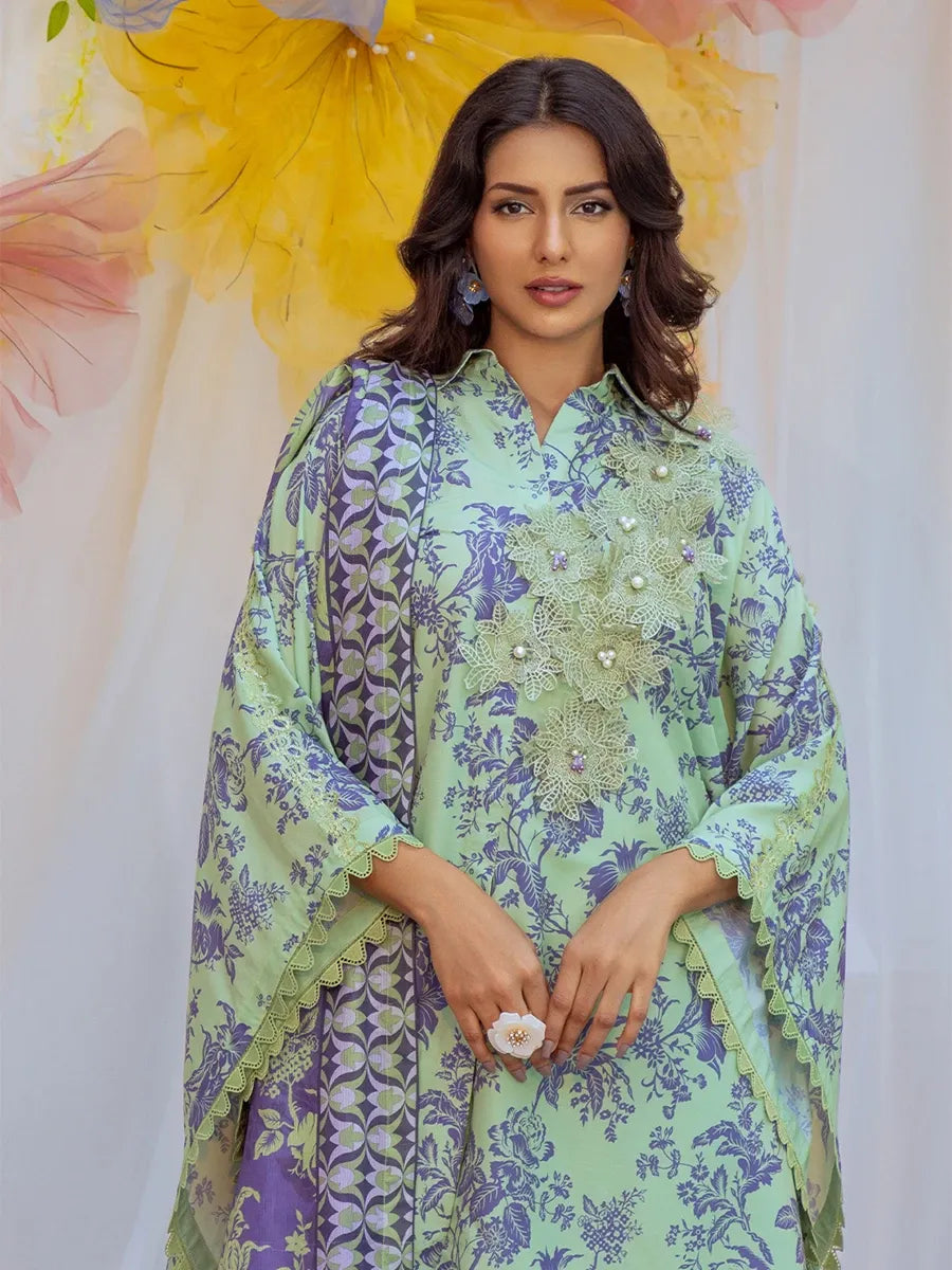 Embrace subtle elegance with our mud green and lavender 3-piece, adorned with a perfect floral print – a serene yet stylish masterpiece for any occasion