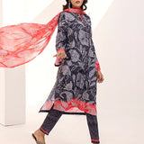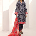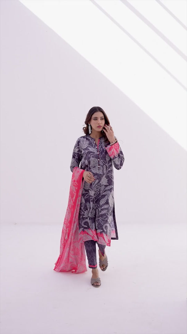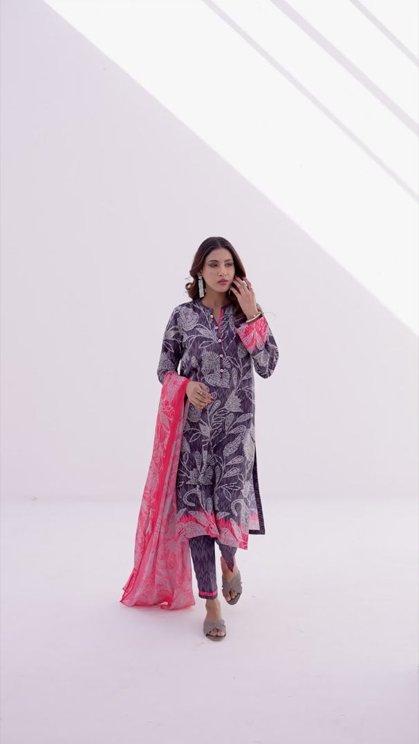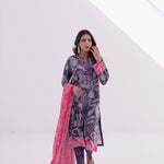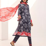 Elegant 3-piece suit in premium printed lawn silk. Includes a breathable shirt, matching trousers, and lightweight dupatta. Perfect for any occasion