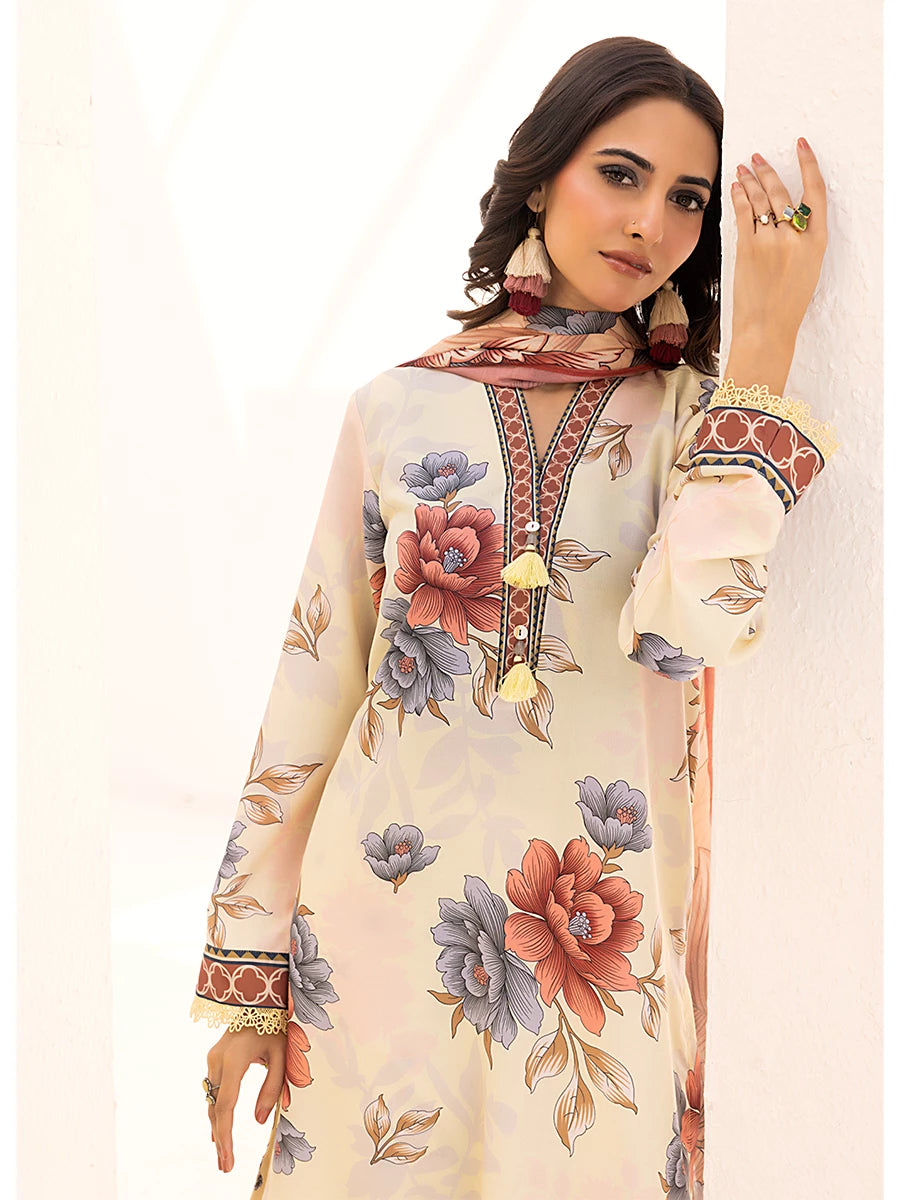 3PC Unstitched Printed Lawn Silk Suit (ASI101)