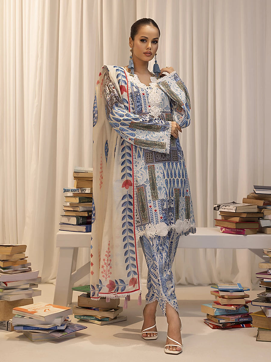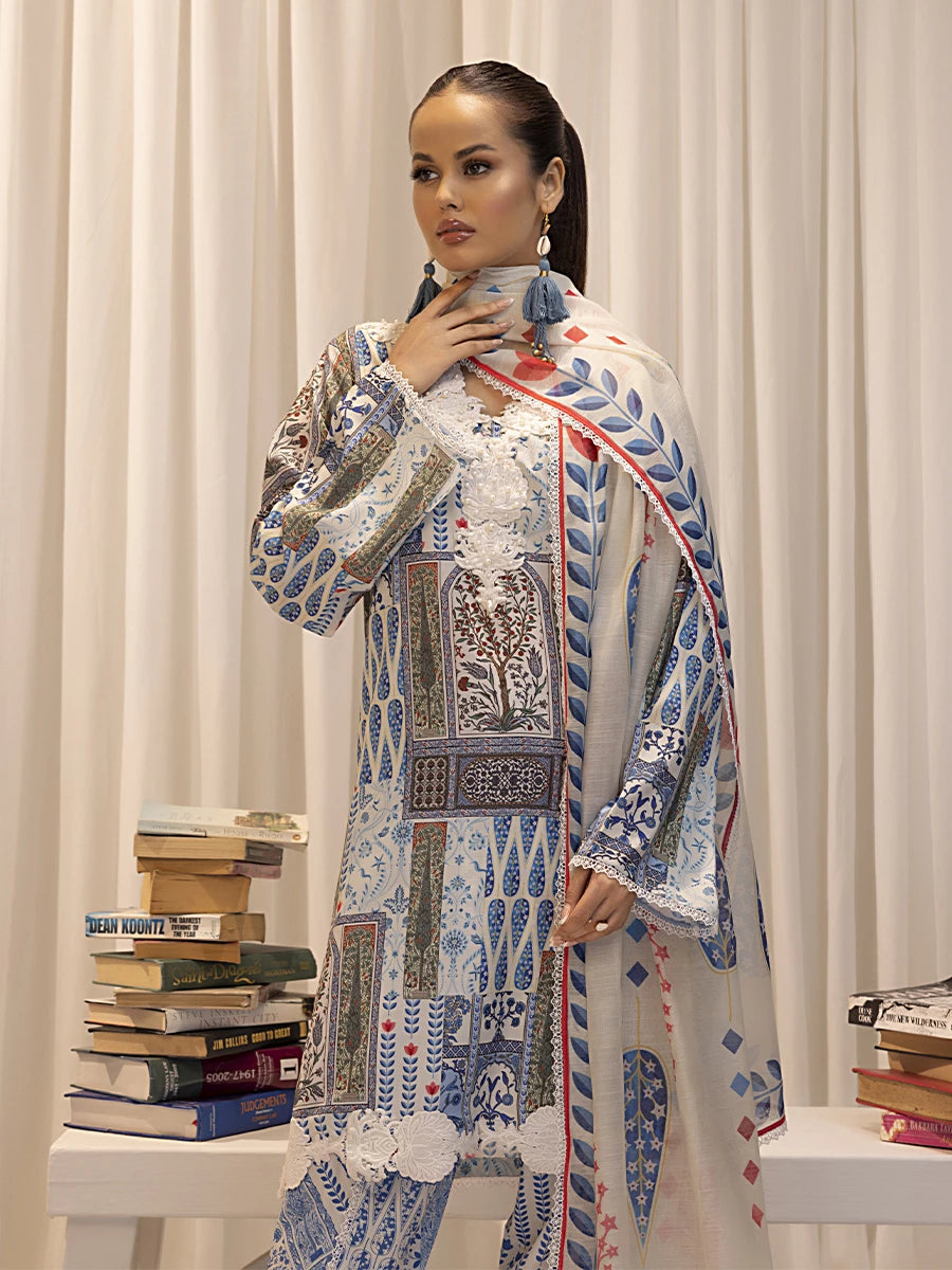 3pc Unstitched - Printed Lawn Silk Suit (ASI023)