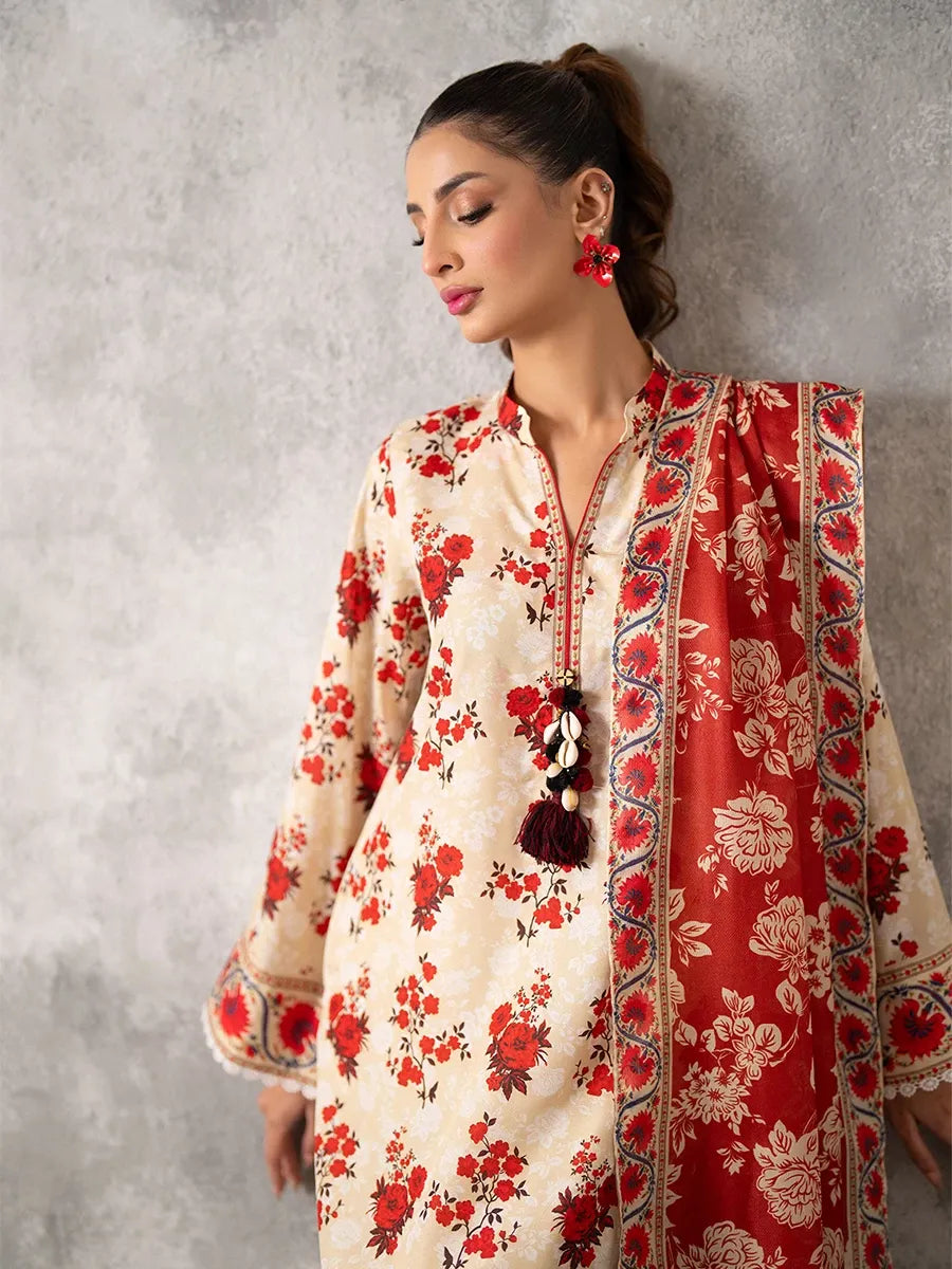 3pc Unstitched - Printed Lawn Silk Suit (ASI025)